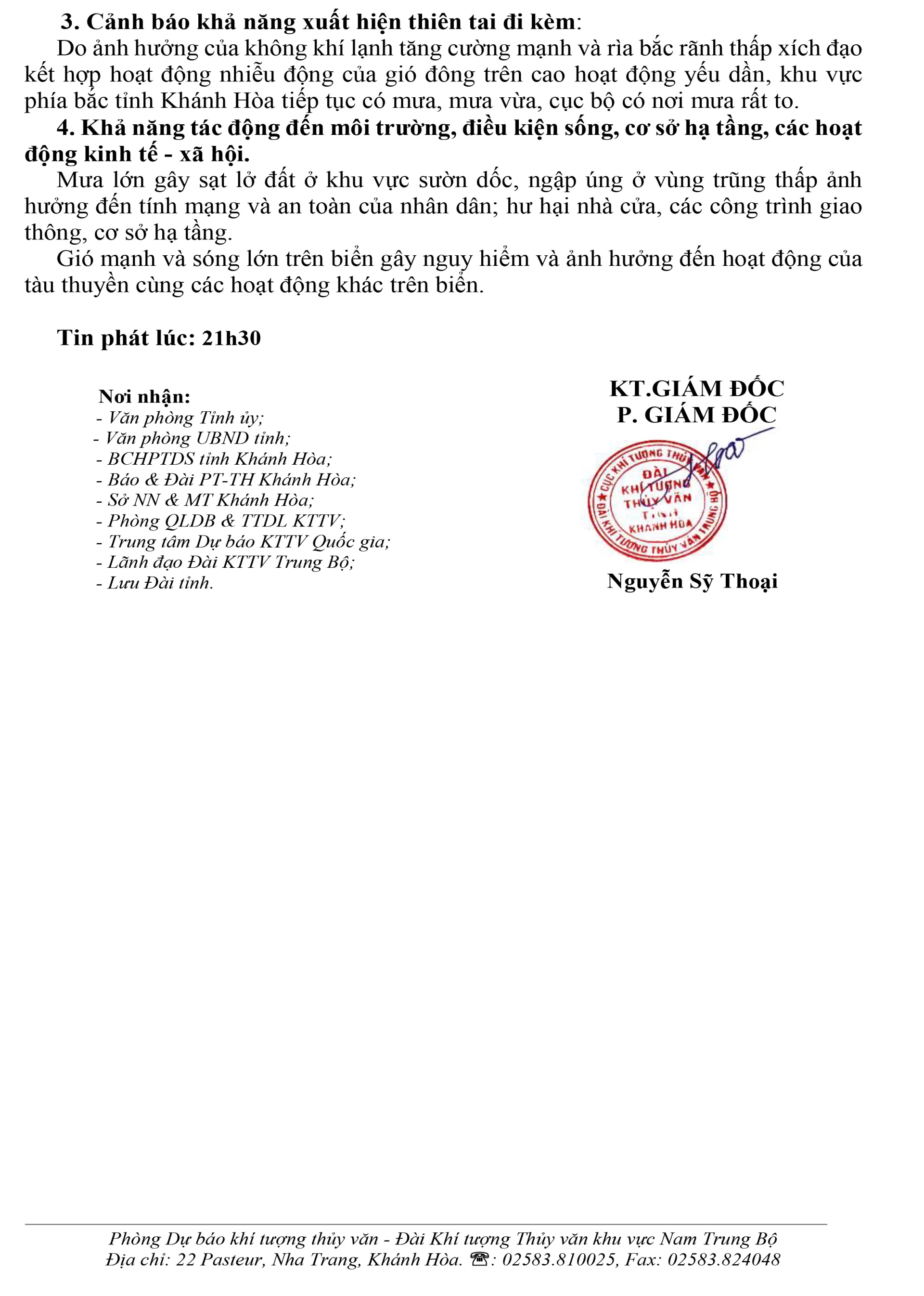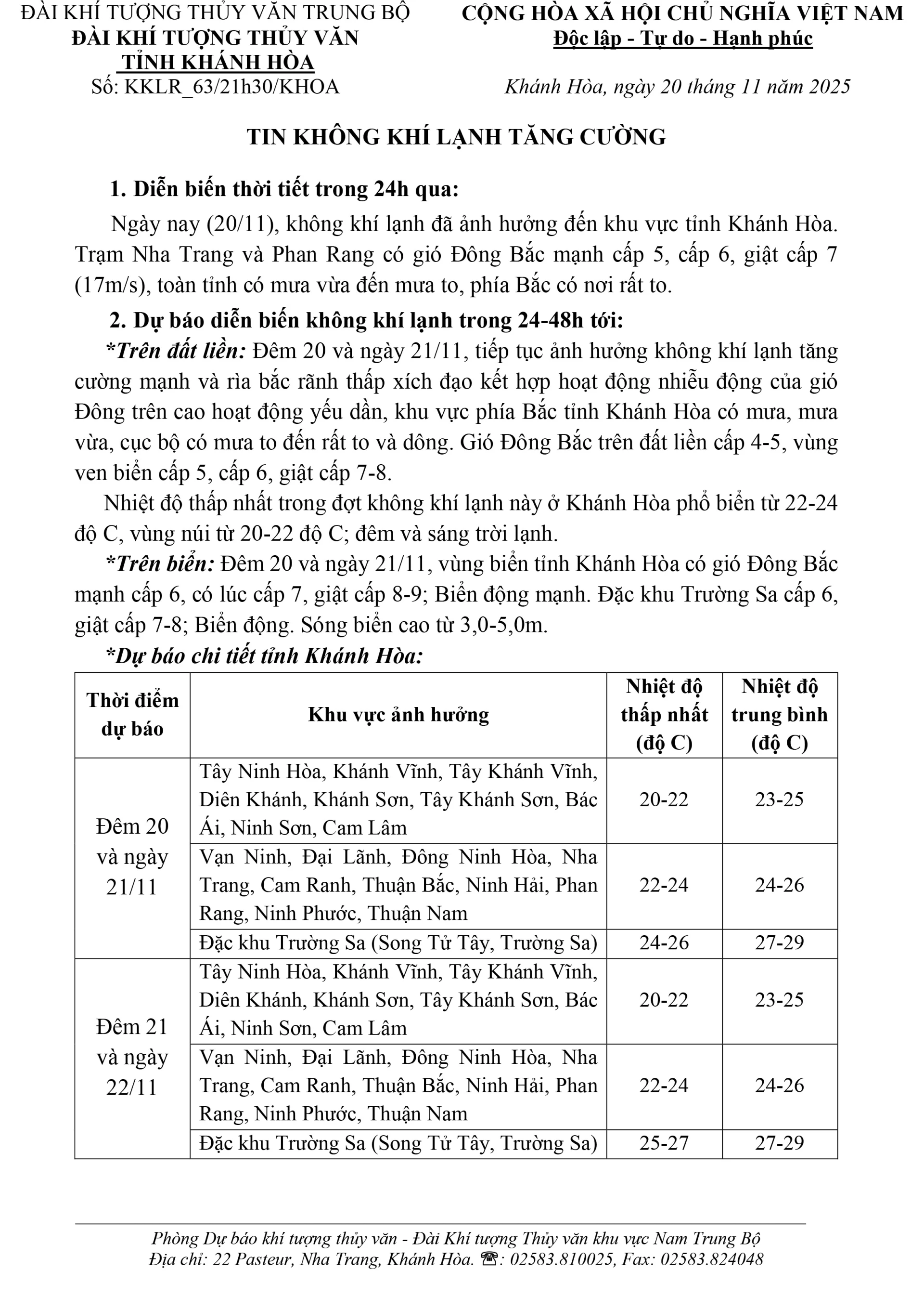 Tin không khí lạnh tăng cường (tin phát lúc 21h30 ngày 20-10)
