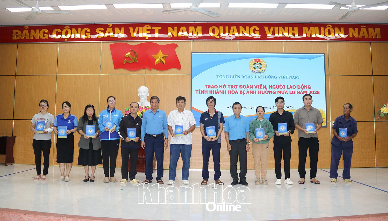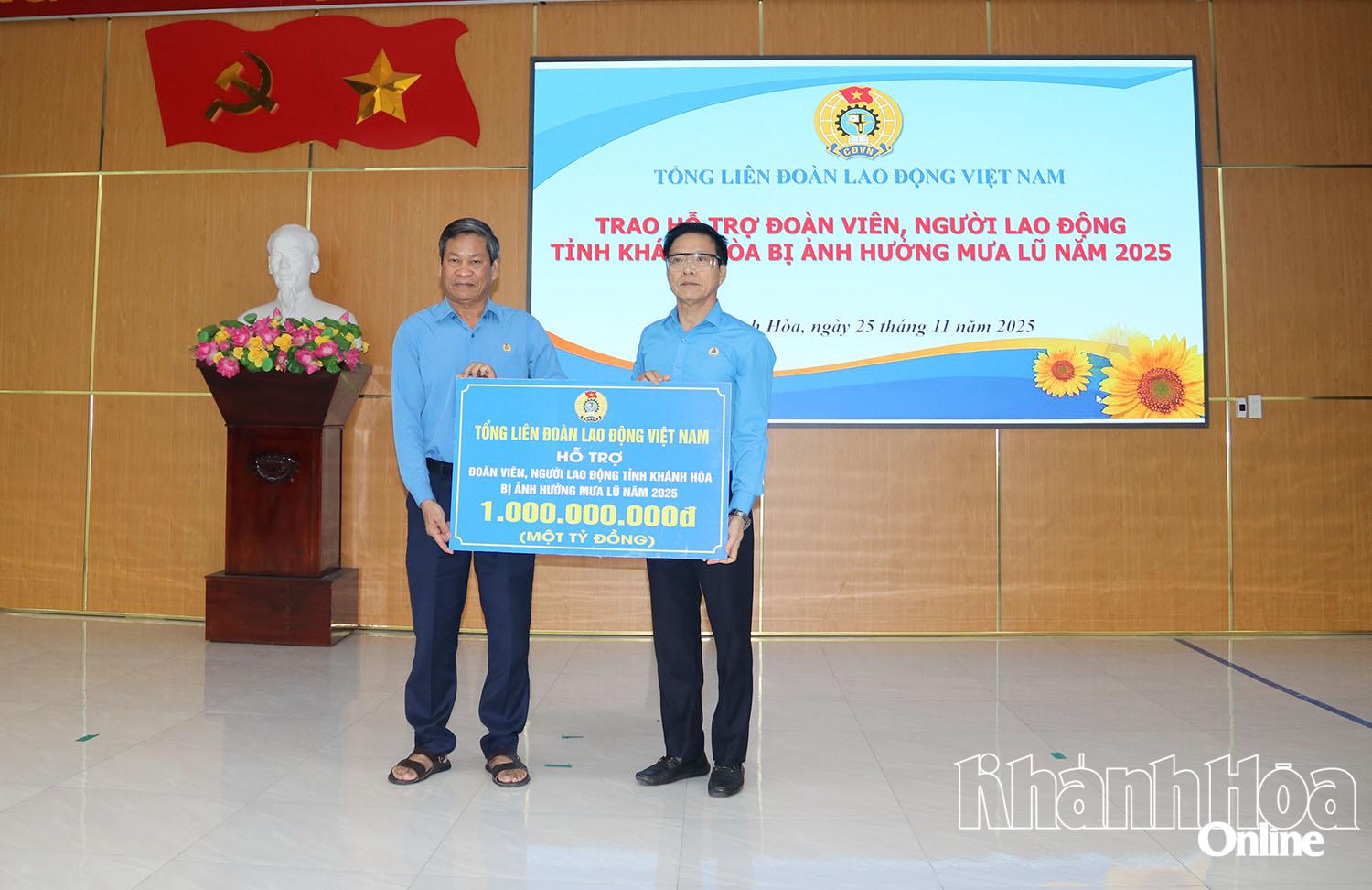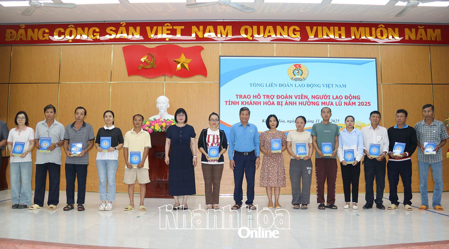 Theo đó, Tổng LĐLĐ Việt Nam đã trao hỗ trợ 1 tỷ đồng cho đoàn viên, người lao động bị ảnh hưởng bởi mưa lũ vừa qua. Tại chương trình, 40 đoàn viên, người lao động thuộc 2 phường Nam Nha Trang và Tây Nha Trang bị thiệt hại do mưa lũ đã được nhận hỗ trợ 2 triệu đồng/người từ nguồn hỗ trợ của Tổng LĐLĐ Việt Nam.