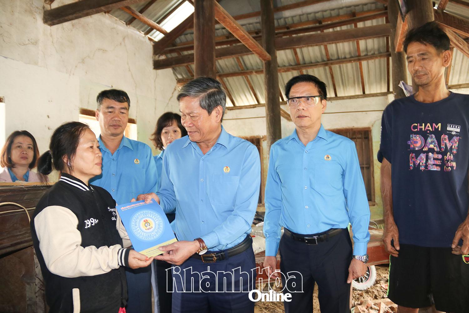 | Lãnh đạo Tổng Liên đoàn Lao động Việt Nam và lãnh đạo Liên đoàn Lao động tỉnh Khánh Hòa trao hỗ trợ cho đoàn viên, người lao động. |