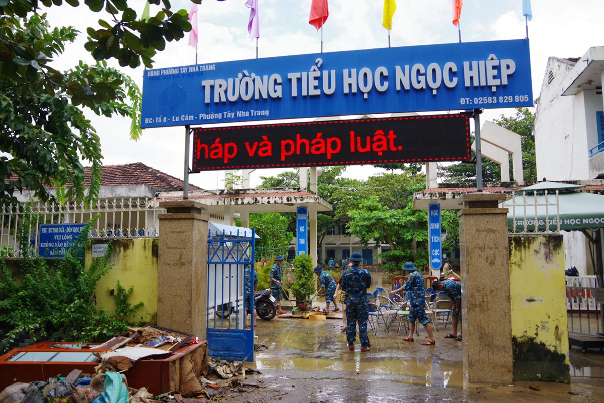 Theo đó, từ ngày 22-11, gần 200 cán bộ, học viên, chiến sĩ cùng nhiều phương tiện chuyên dụng của nhà trường như máy ủi, xe xúc, xe cứu hỏa, máy bơm cao áp, xe cứu thương, 500 suất cơm đã được huy động đến các khu vực chịu thiệt hại nặng gồm: Thôn Phú Ân Nam (xã Diên Khánh); Trường Mầm non Ngôi Sao Xanh (Khu đô thị Vĩnh Điềm Trung); Trường Tiểu học Ngọc Hiệp và Trường THCS Ngọc Hiệp (phường Tây Nha Trang). Bộ đội nhà trường phối hợp với chính quyền địa phương tổ chức thu dọn bùn đất, vệ sinh phòng học, khơi thông hệ thống thoát nước, hỗ trợ di chuyển tài sản và chăm sóc sức khỏe cho nhân dân.