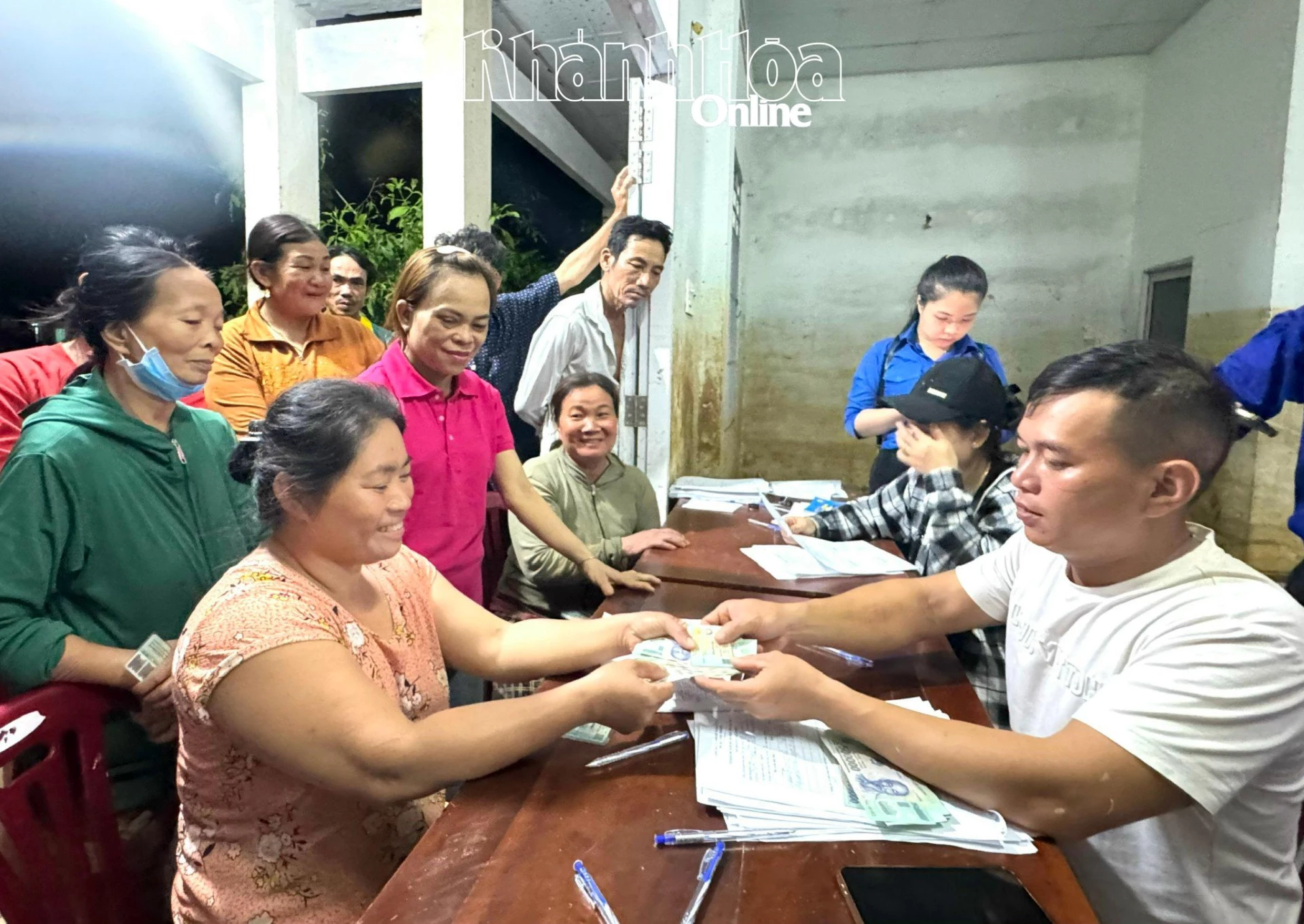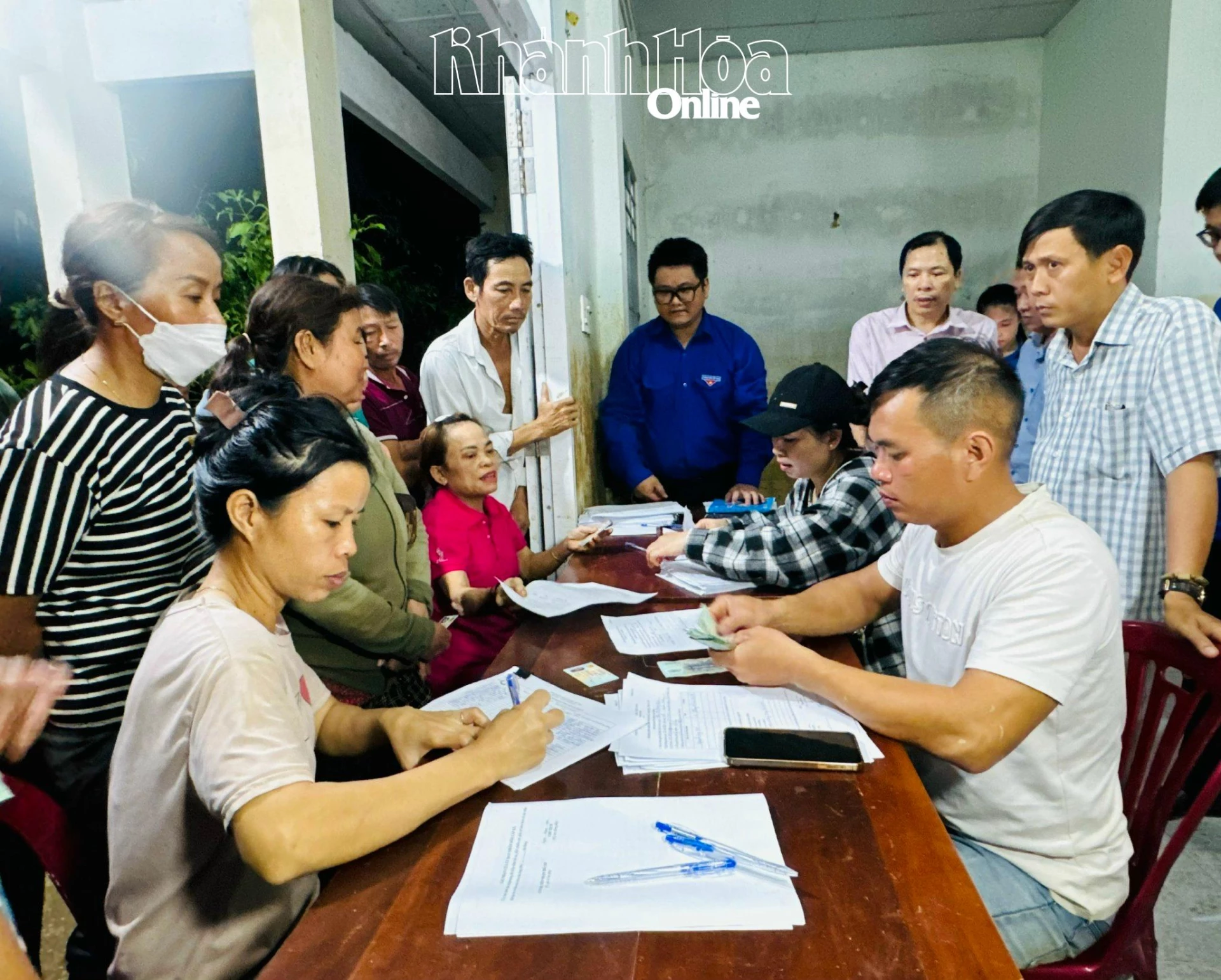 | Trưởng thôn Trung 1 trao tiền hỗ trợ tại nhà một người dân. |