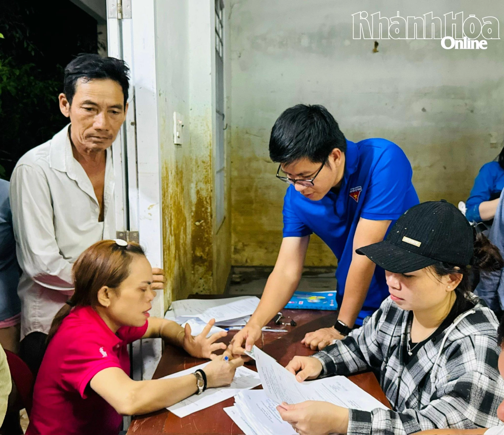 | Đoàn viên Chi đoàn Sở Tài chính hướng dẫn người dân điền các thông tin trong tờ khai. |