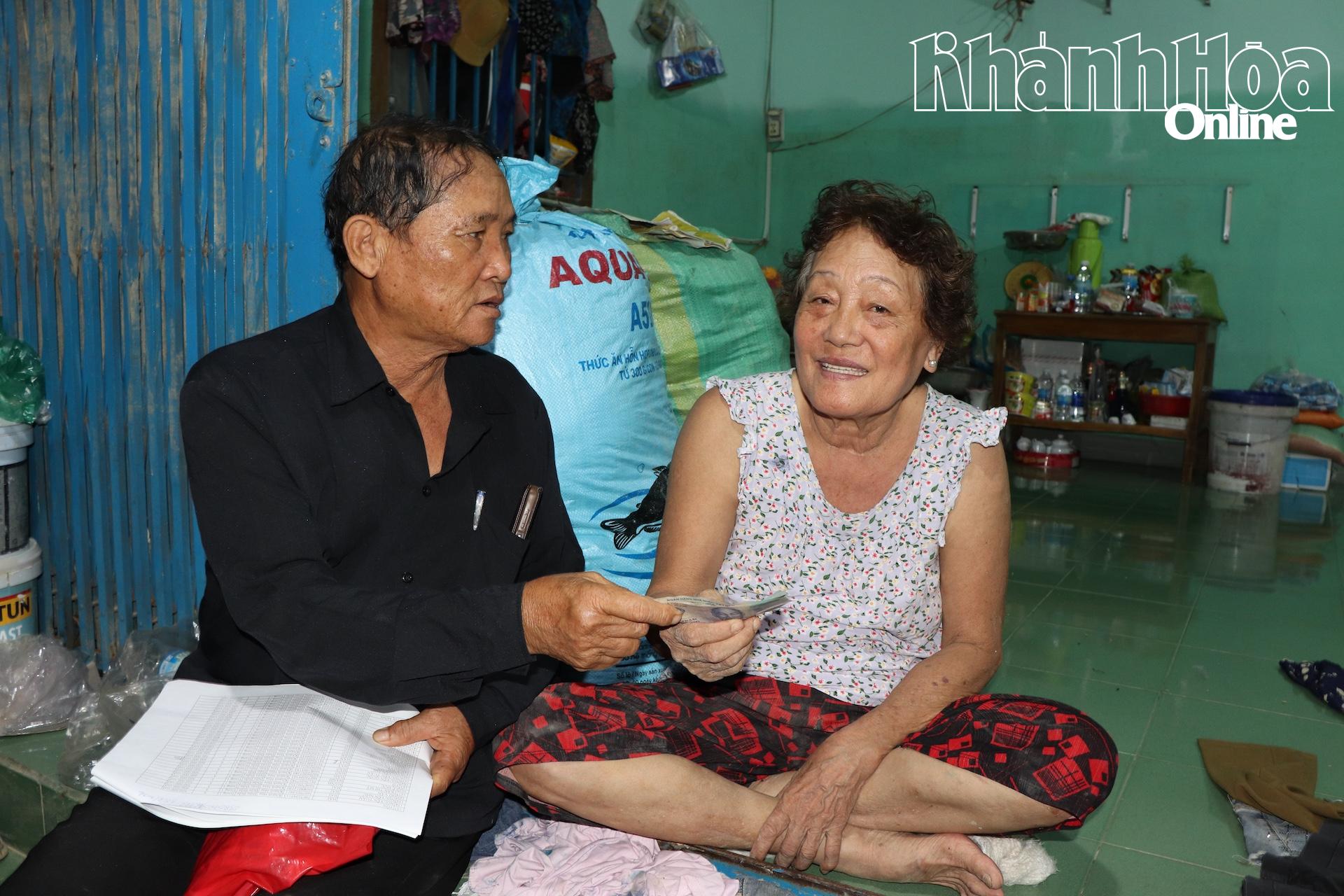 | Bà Lương Thị Hay (thôn Trung 1) phấn khởi khi được Trưởng thôn đến tận nhà trao tiền hỗ trợ. |