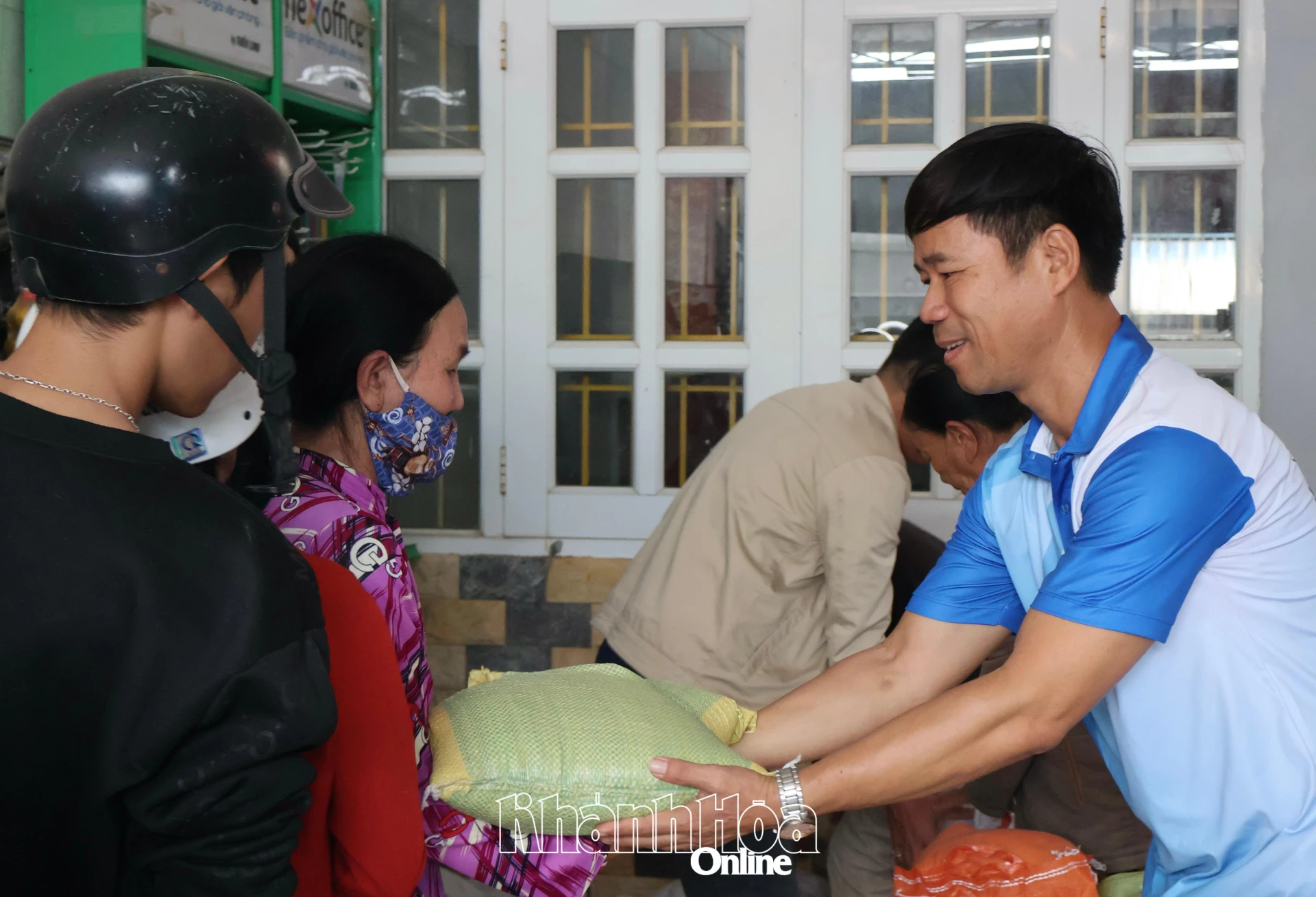 | Ông Trần Văn Thanh - Phó Giám đốc Báo và Phát thanh, Truyền hình Khánh Hòa trao quà cho người dân xã Diên Diền. |