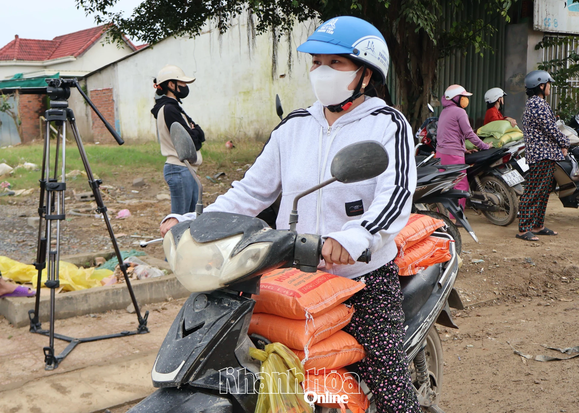 | Người dân xã Diên Điền nhận các nhu yếu phẩm trở về nhà. |
