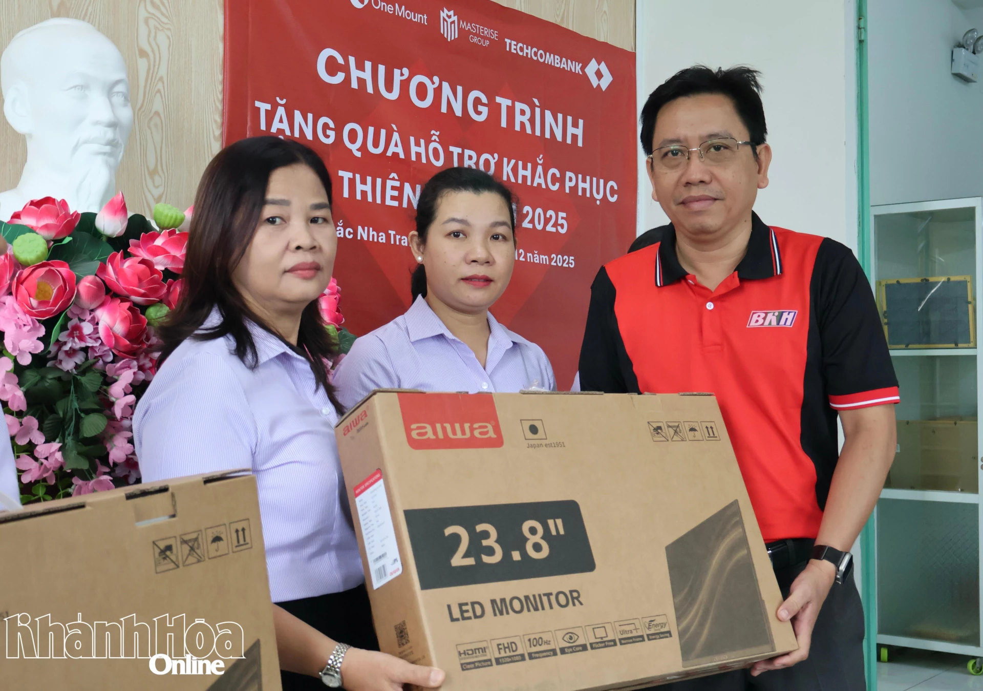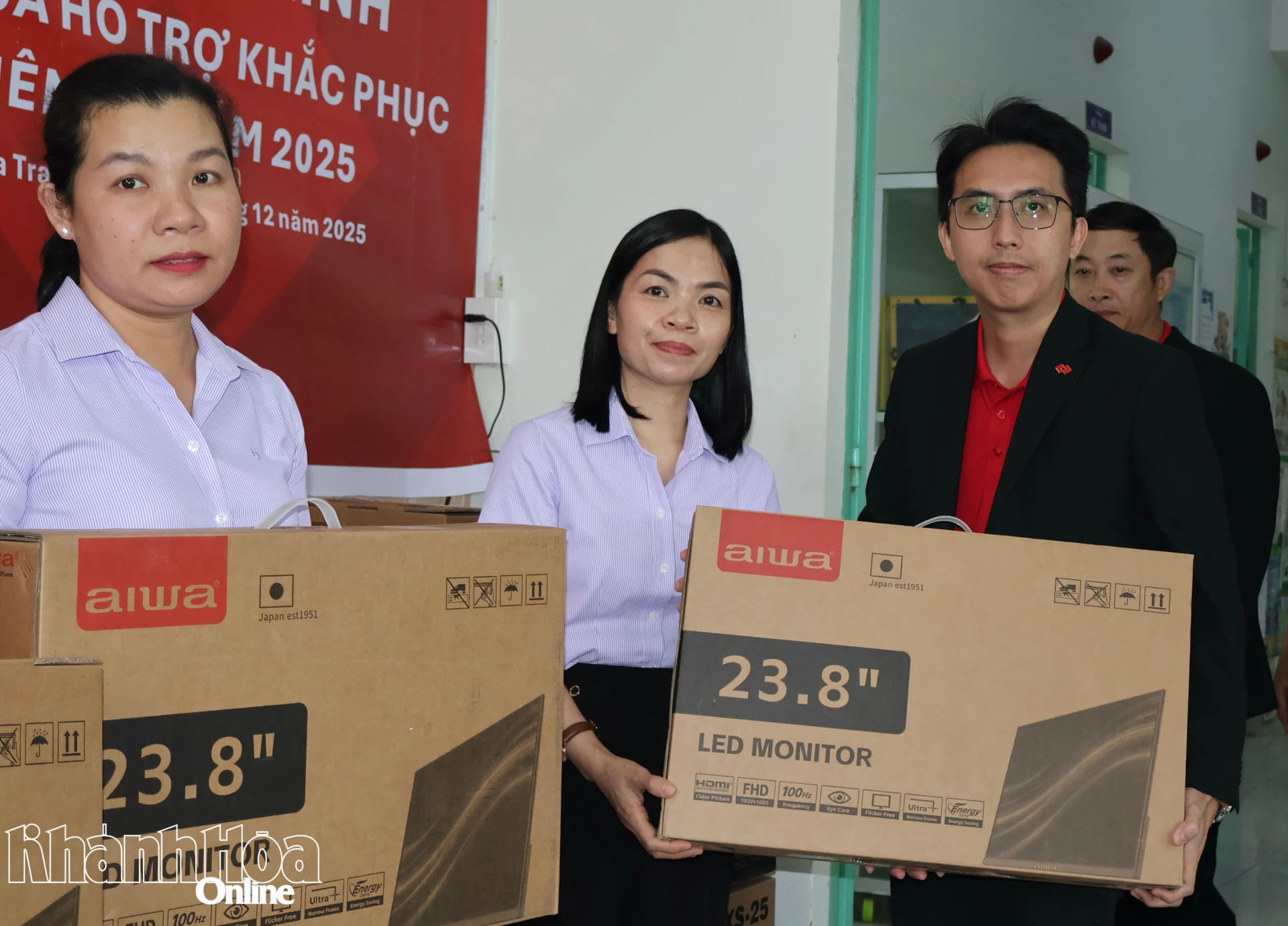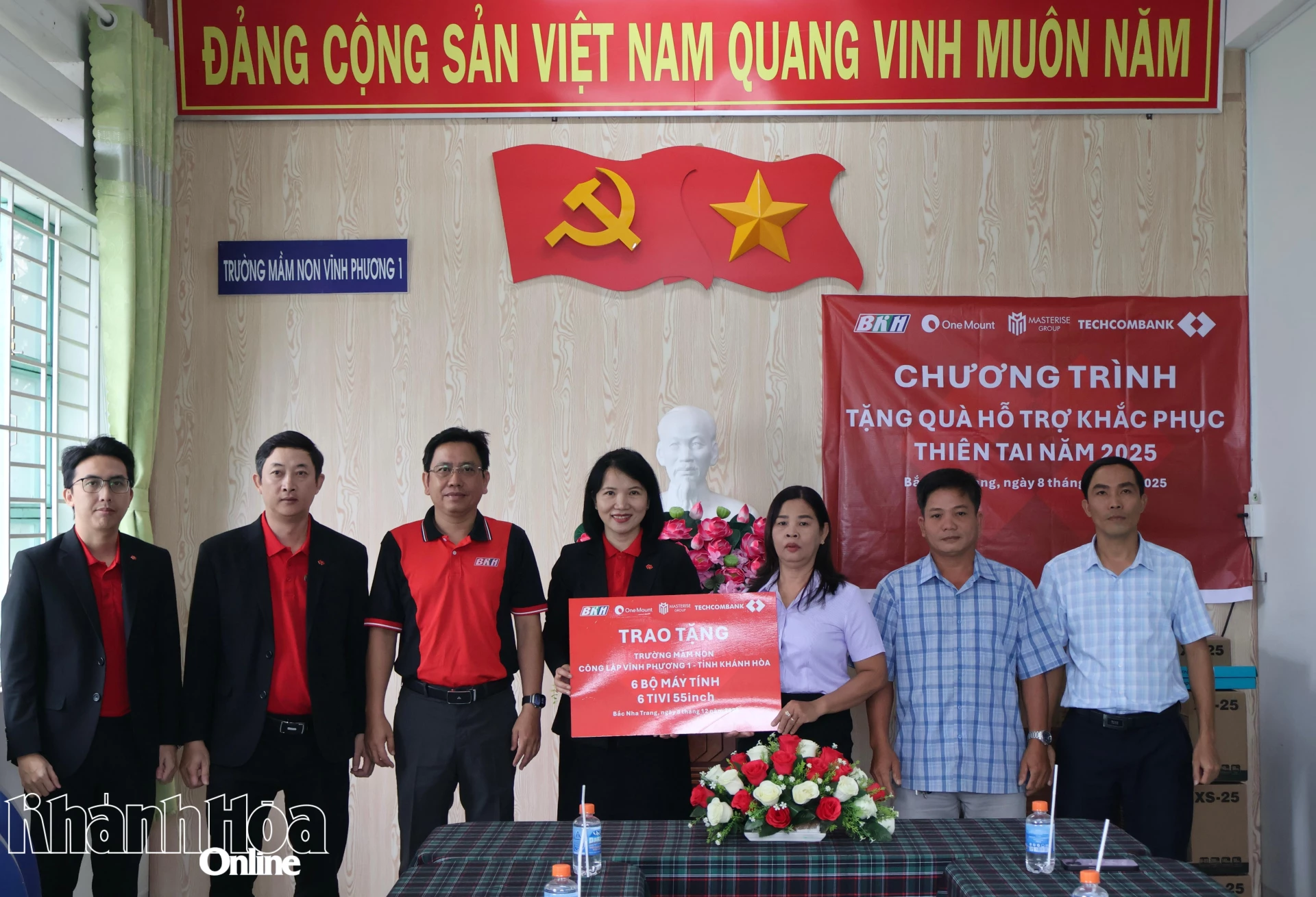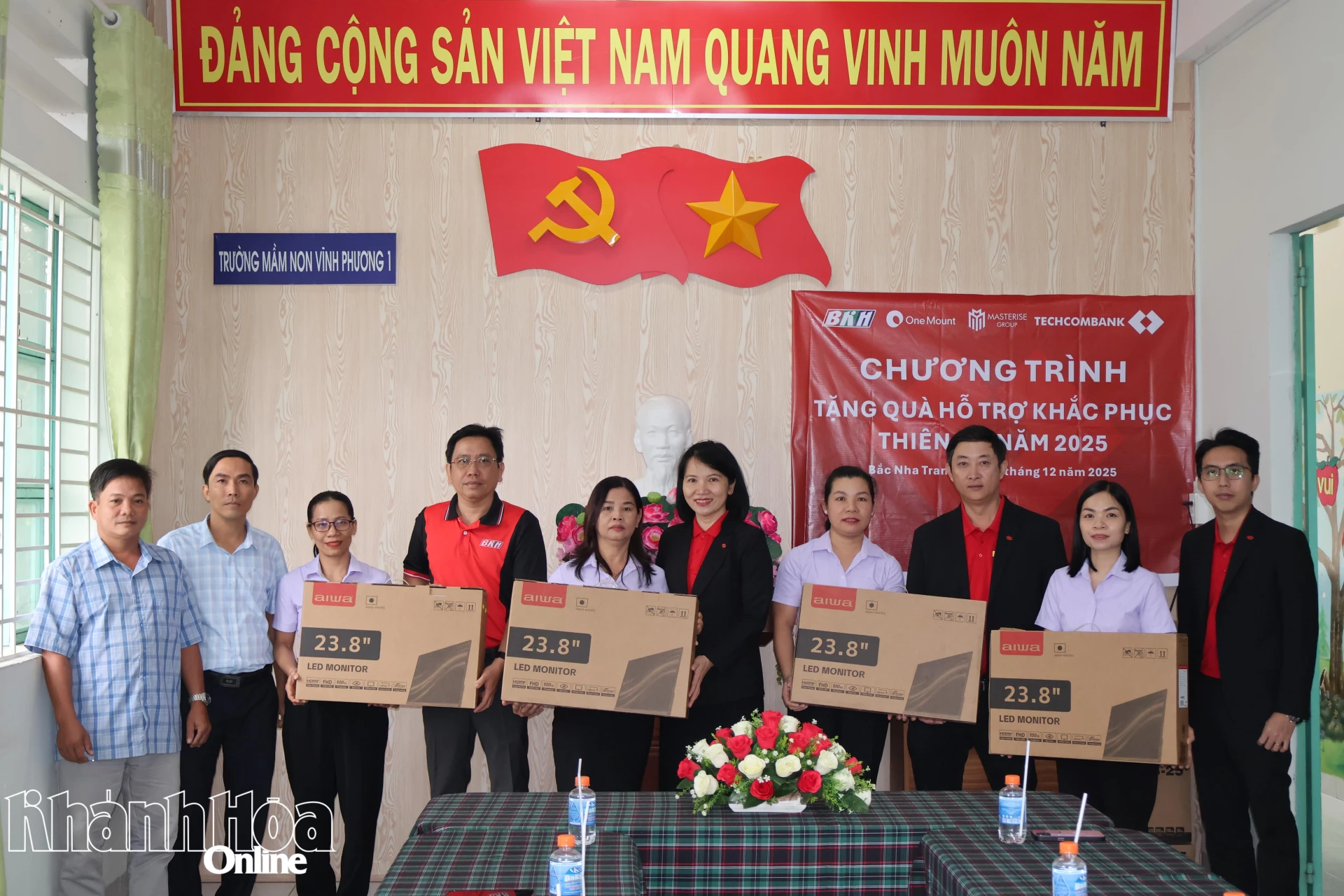 Đợt mưa lũ vừa qua đã làm ngập một số phòng làm việc, phòng học, hư hỏng các thiết bị điện tử: Máy tính, tivi... của Trường Mầm non Vĩnh Phương 1. Vì vậy, Báo và Phát thanh, Truyền hình Khánh Hòa, Techcombank và các đơn vị đồng hành đã tặng 6 bộ máy tính, 6 tivi cho nhà trường nhằm kịp thời chia sẻ, động viên, hỗ trợ nhà trường khắc phục thiên thiệt hại, duy trì tốt công tác dạy và học.