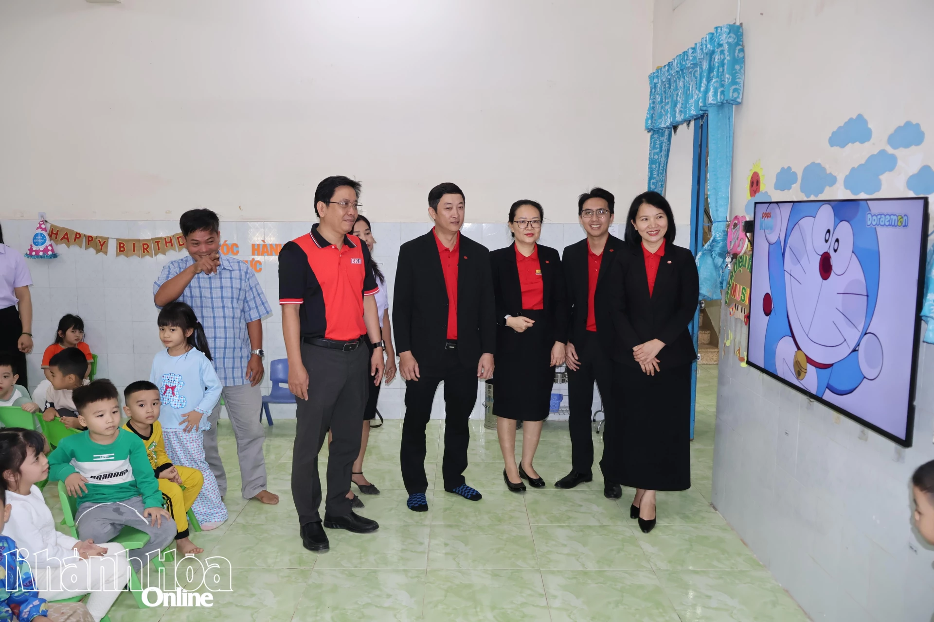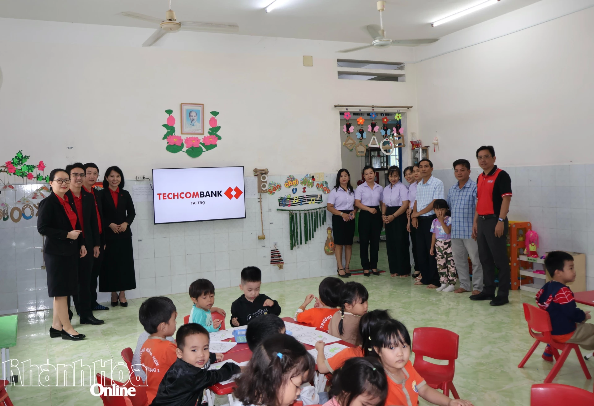 | Lãnh đạo Báo và Phát thanh, Truyền hình Khánh Hòa, Techcombank và các đơn vị đồng hành thăm Trường Mầm non Vĩnh Phương 1. |