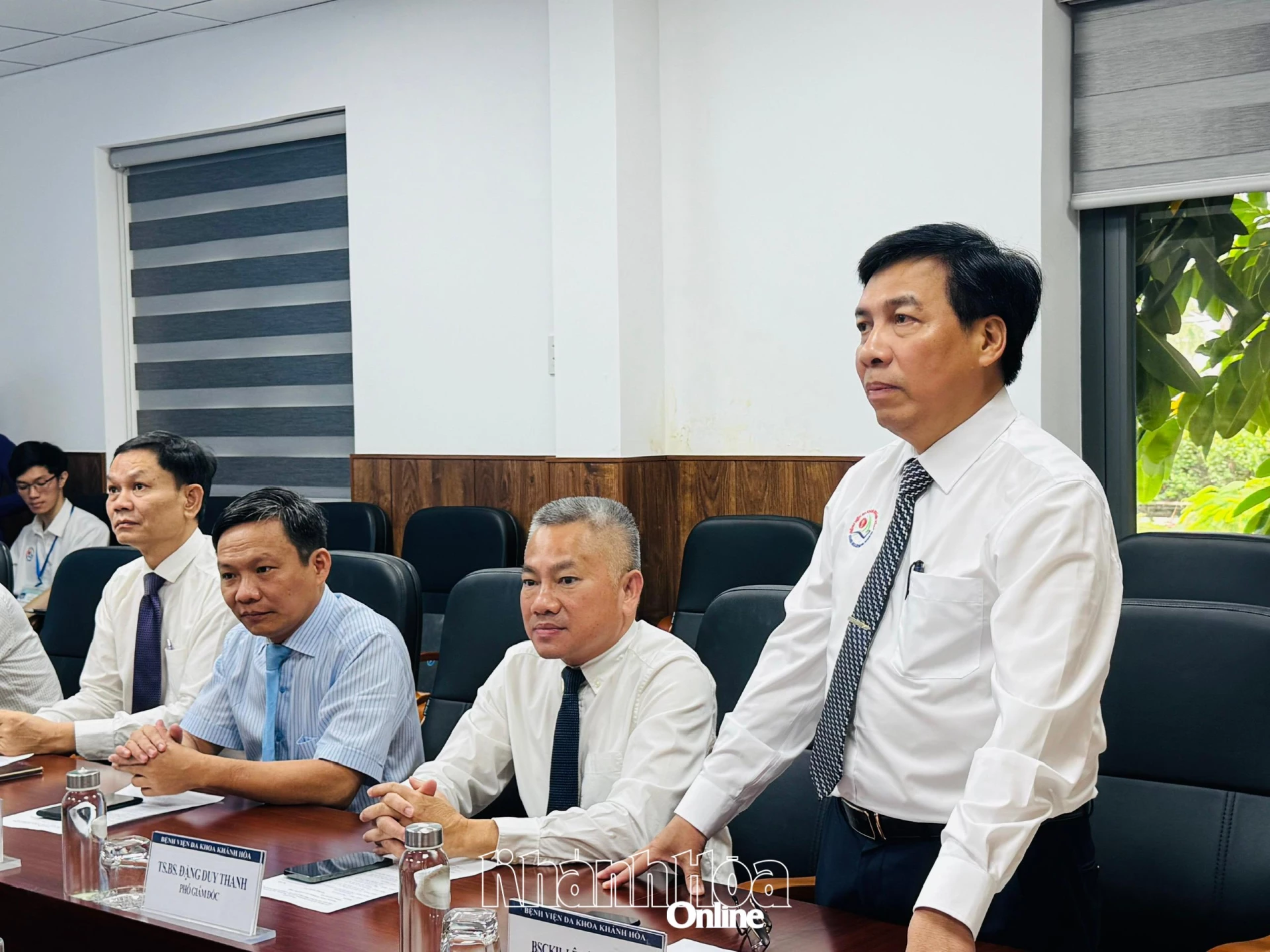 | Bác sĩ chuyên khoa II Lê Vũ Chương - Giám đốc Bệnh viện Đa khoa Khánh Hòa phát biểu tại lễ ký kết. |