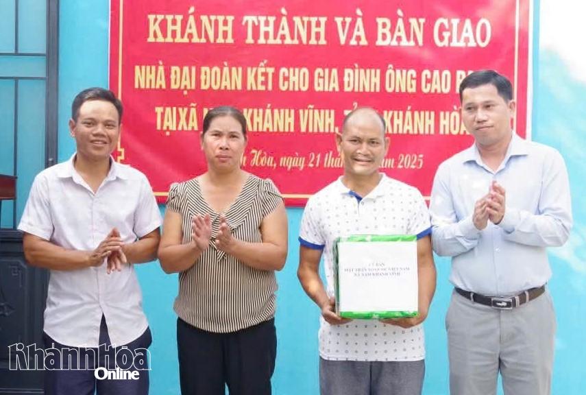 Nhân kỷ niệm 81 năm Ngày thành lập Quân đội nhân dân Việt Nam (22-12-1944 - 22-12-2025) và 36 năm Ngày hội Quốc phòng toàn dân (22-12-1989 - 22-12-2025), chiều 21-12, Bộ Chỉ huy Quân sự tỉnh Khánh Hòa tổ chức lễ khánh thành và bàn giao nhà Đại đoàn kết cho gia đình ông Cao Ranh (thôn Bầu Sang, xã Nam Khánh Vĩnh).
