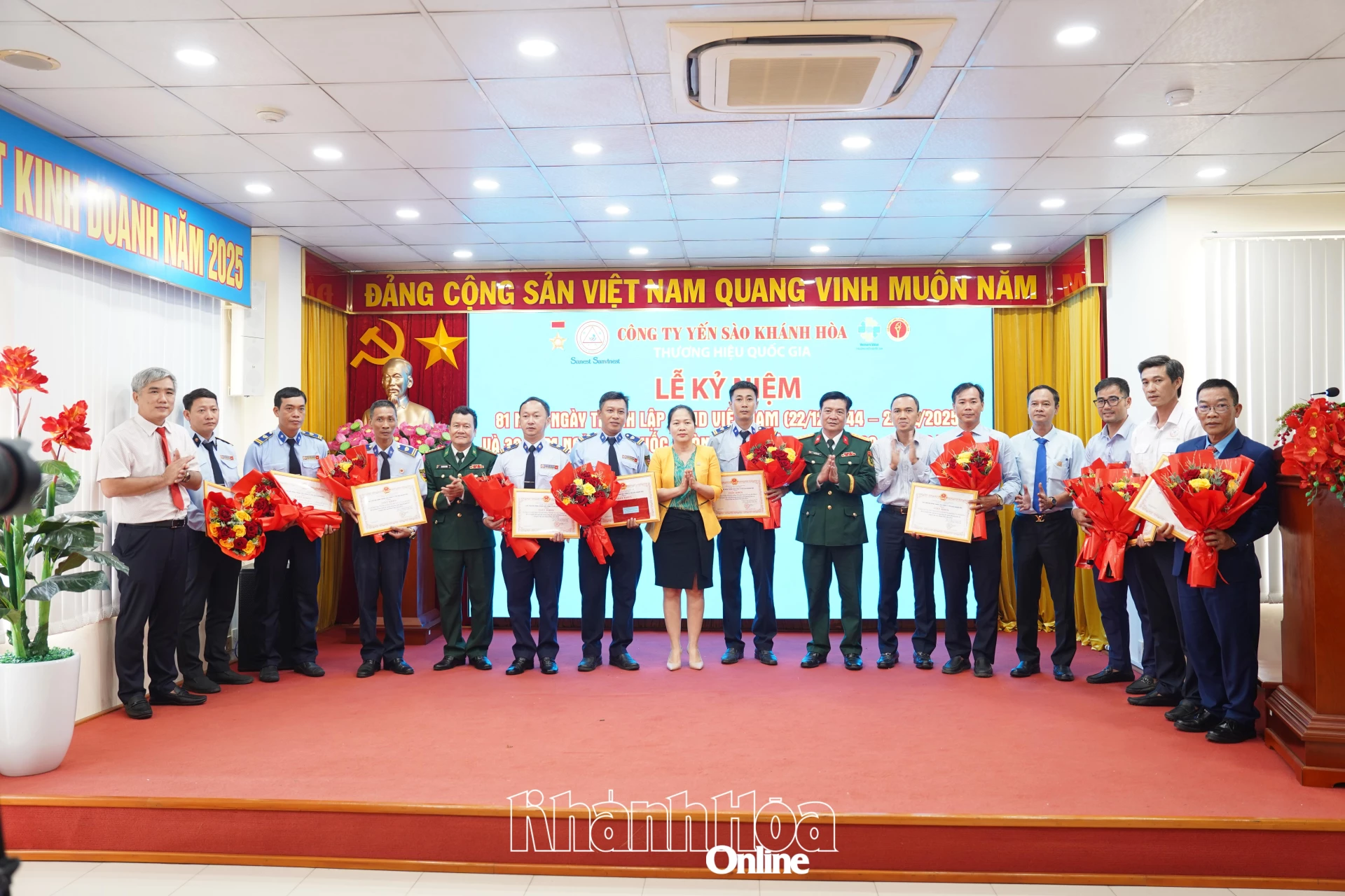 Nhân dịp này, Công ty Yến sào Khánh Hòa khen thưởng 10 cá nhân và 5 tập thể có thành tích hoàn thành xuất sắc nhiệm vụ năm 2025, gồm: Ban Chỉ huy Quân sự công ty; Ban Chấp hành Hội Cựu chiến binh công ty; Trung đội Tự vệ Biển 1, Trung đội Tự vệ Biển 2 và Trung đội Tự vệ tại chỗ.