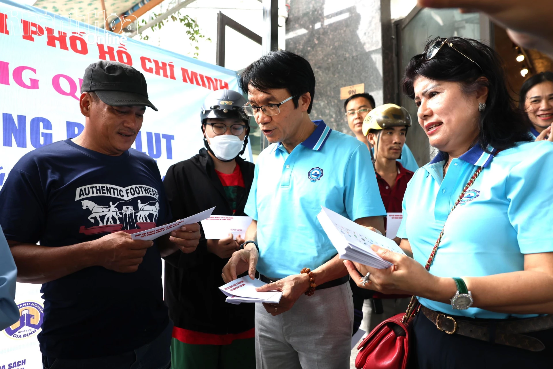 | Lãnh đạo Hiệp hội Doanh nghiệp TP. Hồ Chí Minh tặng quà cho người dân Tổ dân phố Thái Thông 1, phường Nam Nha Trang. |