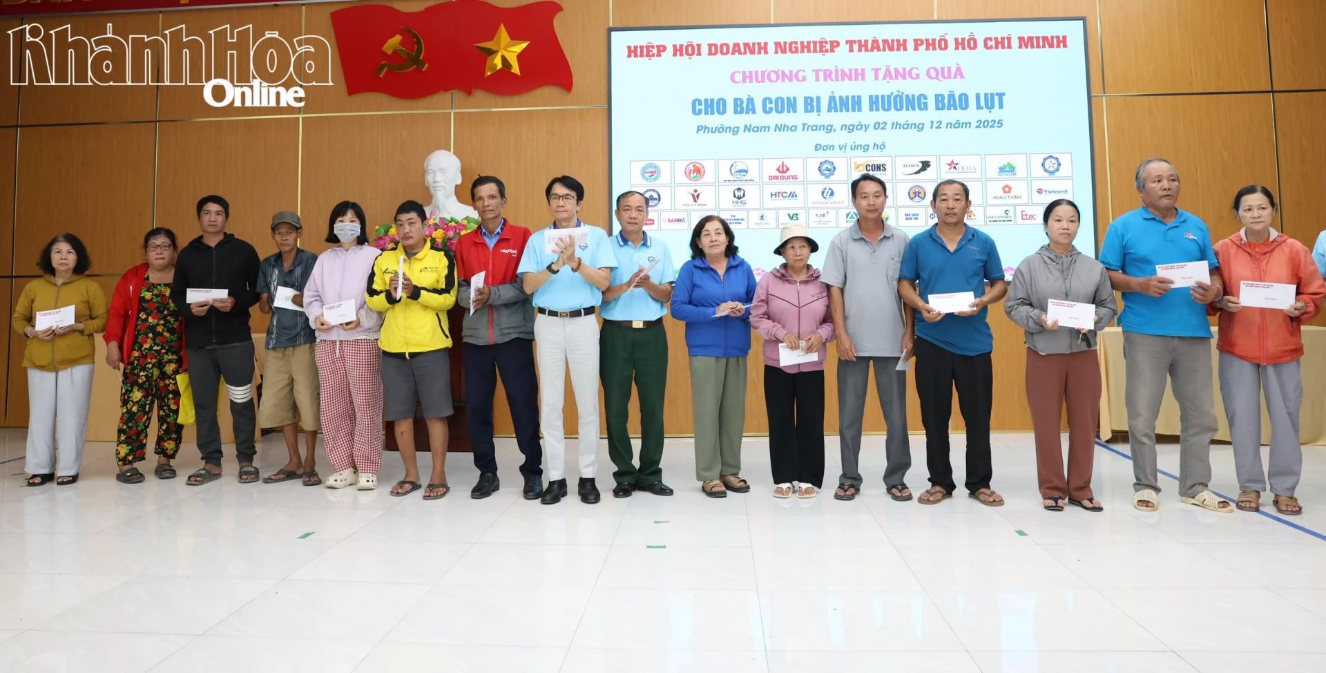 Hưởng ứng kêu gọi của Ủy ban MTTQ Việt Nam về việc hỗ trợ khẩn cấp cho các địa phương bị thiệt hại do mưa lũ, chiều 2-12, Hiệp hội Doanh nghiệp TP. Hồ Chí Minh đến thăm, tặng 200 suất quà cho người dân Tổ dân phố Ngọc Hội 1 (phường Tây Nha Trang); tặng 150 suất quà cho người dân các tổ dân phố: Thái Thông 1, Thái Thông 2, Thủy Tú, Vĩnh Xuân, Đất Lành (phường Nam Nha Trang), mỗi suất quà trị giá 1 triệu đồng. Tại các nơi đến thăm, các thành viên của hiệp hội đã chia sẻ những khó khăn, mất mát; động viên người dân các địa phương sớm vượt qua khó khăn, ổn định lại cuộc sống.