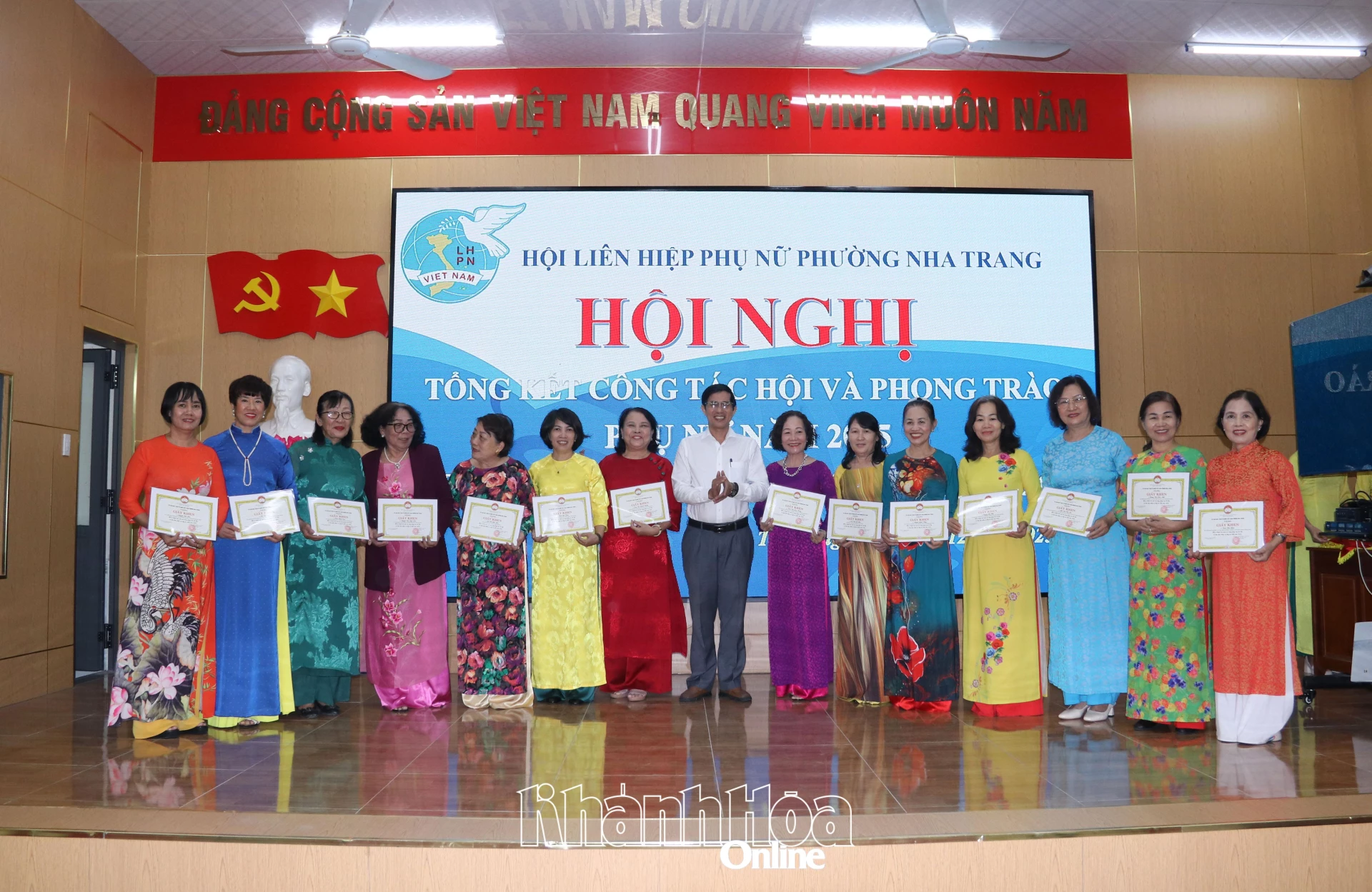 | Đại diện Hội Liên hiệp Phụ nữ tỉnh Khánh Hòa trao bằng khen của Trung ương Hội Liên hiệp Phụ nữ Việt Nam cho Hội Liên hiệp Phụ nữ phường Nha Trang. |