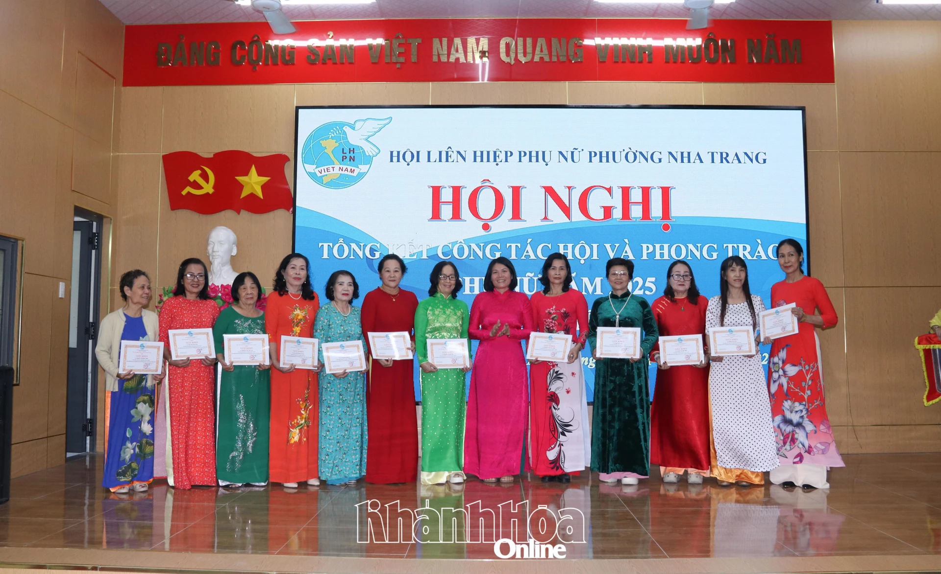 Dịp này, Trung ương Hội LHPN Việt Nam tặng bằng khen cho tập thể Hội LHPN phường Nha Trang vì đã có thành tích xuất sắc trong phong trào thi đua và thực hiện nhiệm công tác hội năm 2025. Ủy ban MTTQ Việt Nam phường khen thưởng 16 tập thể, 30 cá nhân có thành tích xuất sắc trong thực hiện công tác hội; khen thưởng 10 cá nhân có nhiều đóng góp trong công tác an sinh xã hội và ủng hộ Nhân dân khắc phục hậu quả mưa lũ. Hội LHPN phường khen thưởng 10 tập thể, 46 cá nhân có thành tích xuất sắc trong công tác hội và phong trào phụ nữ năm 2025; 28 tập thể có thành tích xuất sắc trong công tác quản lý vốn vay năm 2025.
