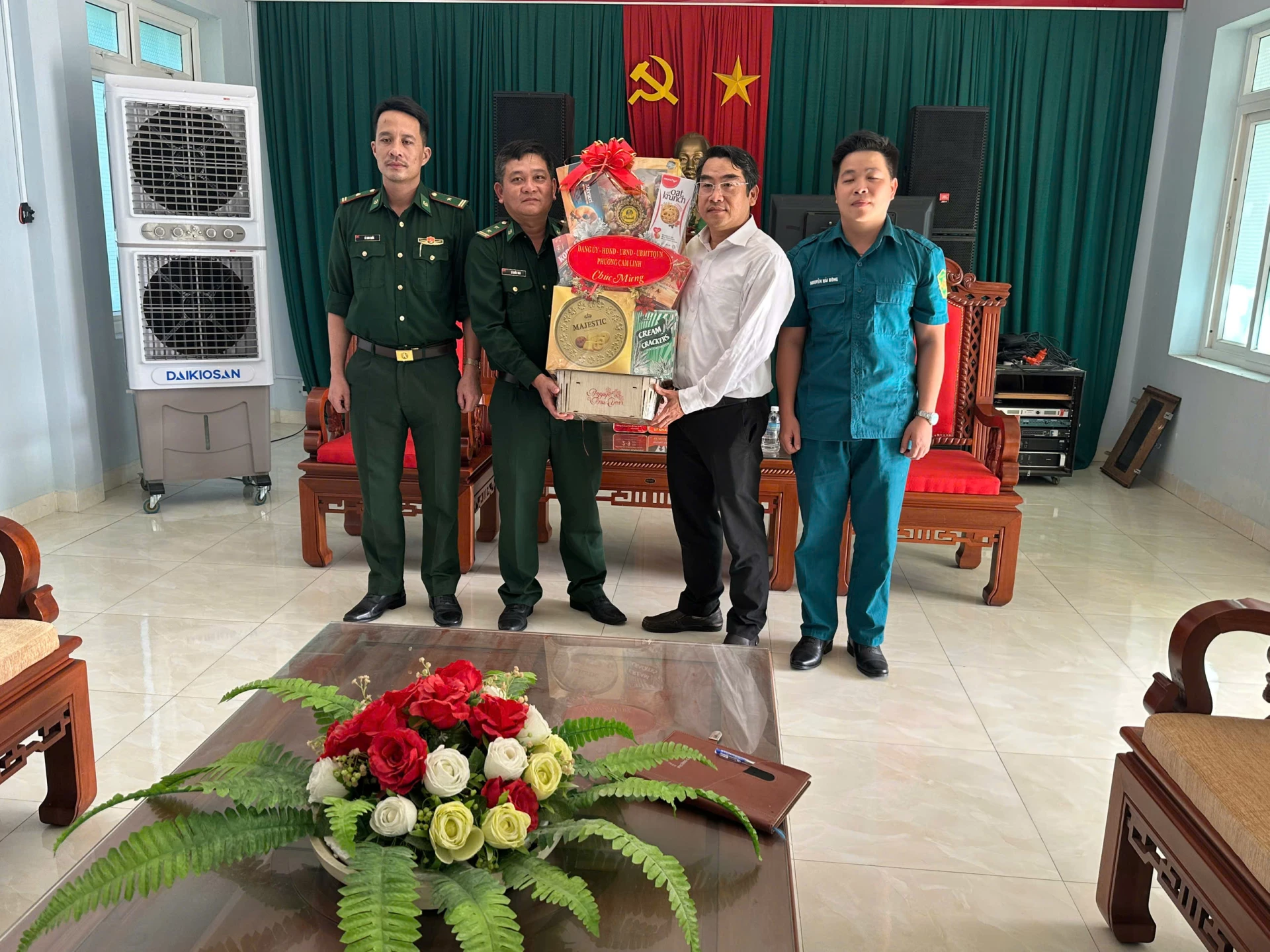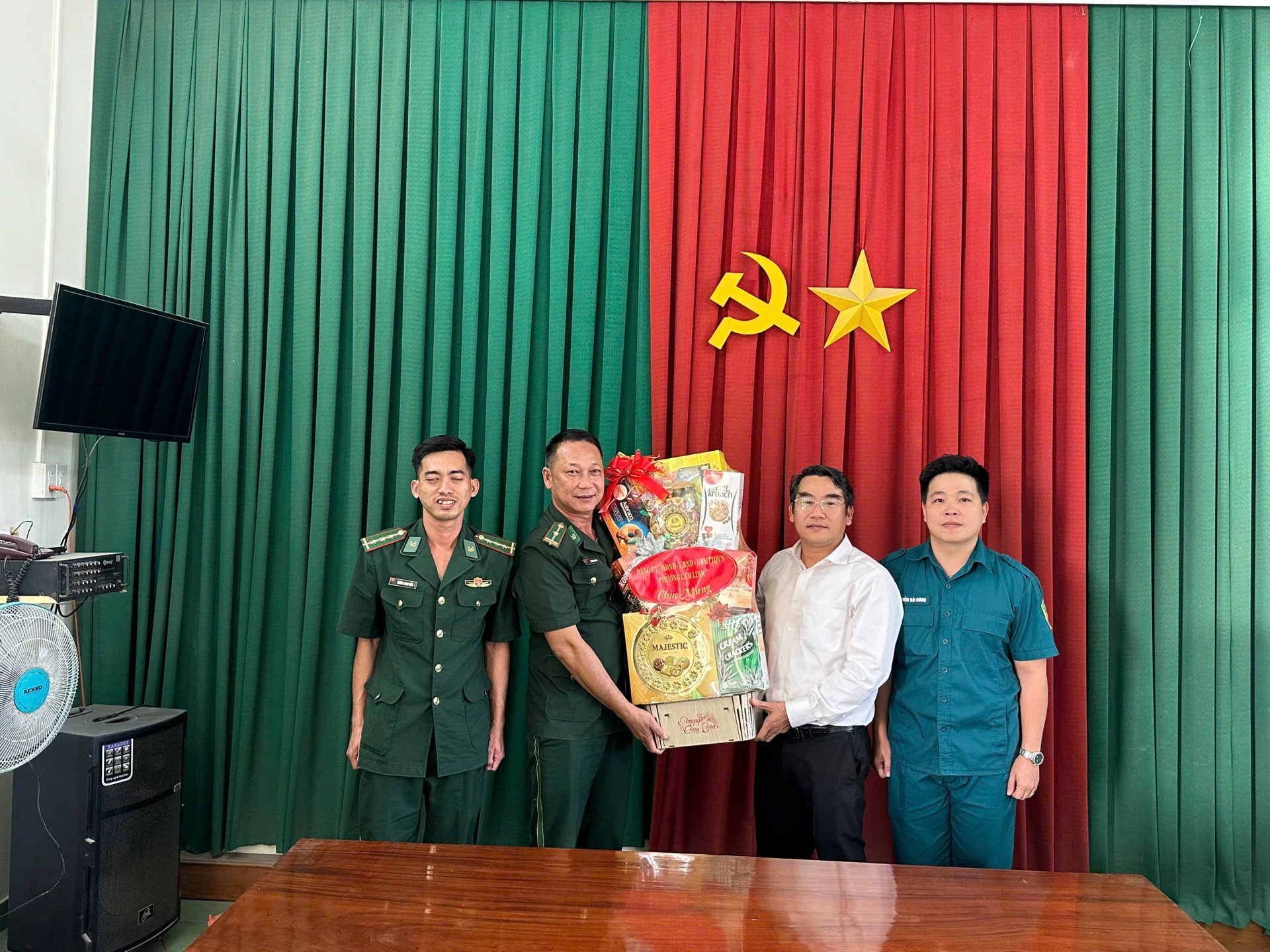| Lãnh đạo UBND phường tặng quà chúc mừng Trạm Biên phòng cửa khẩu. |