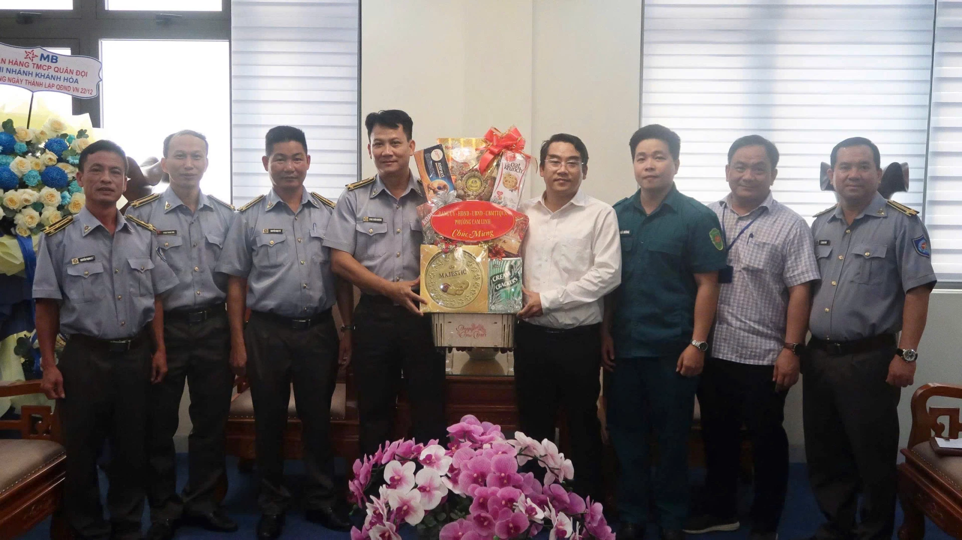 | Lãnh đạo UBND phường chúc mừng Đồn Biên phòng Cam Ranh. |