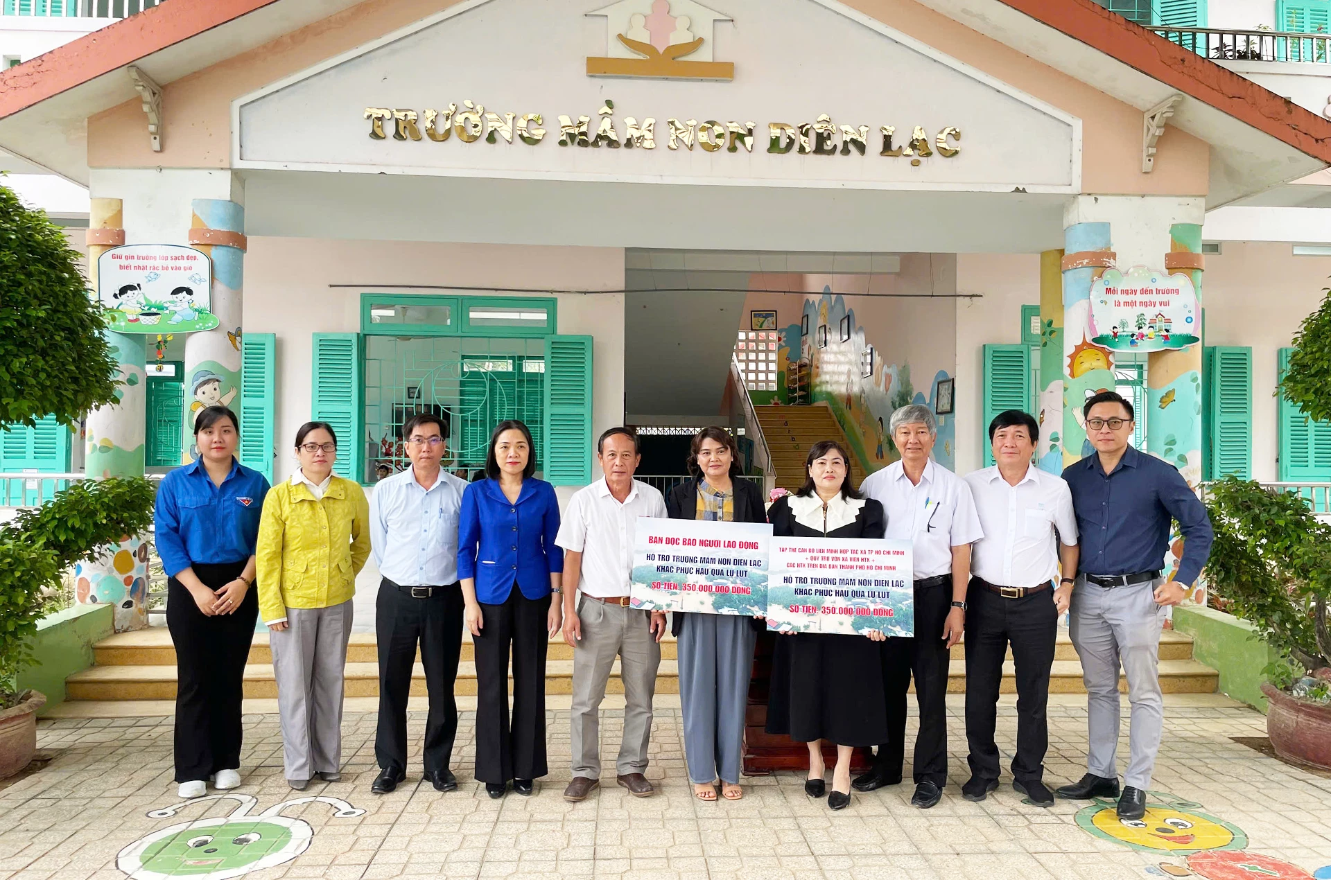 Bà Đinh Thị Mai Thảo - Hiệu trưởng Trường Mầm non Diên Lạc, cho biết trong trận lũ lịch sử vừa qua, nước dâng rất nhanh, toàn bộ tầng 1 của trường bị ngập nặng làm hư hỏng tất cả thiết bị dạy học. Hơn 200m tường rào phía trước cũng bị sập, gây mất an toàn và ảnh hưởng nghiêm trọng đến hoạt động dạy - học của nhà trường. Số tiền được hỗ trợ sẽ dùng để sửa chữa cơ sở vật chất và mua sắm các thiết bị bị hư hỏng do lũ. Nhà trường cam kết sử dụng đúng mục đích khoản kinh phí được hỗ trợ, đồng thời cung cấp đầy đủ hóa đơn, chứng từ theo quy định pháp luật.