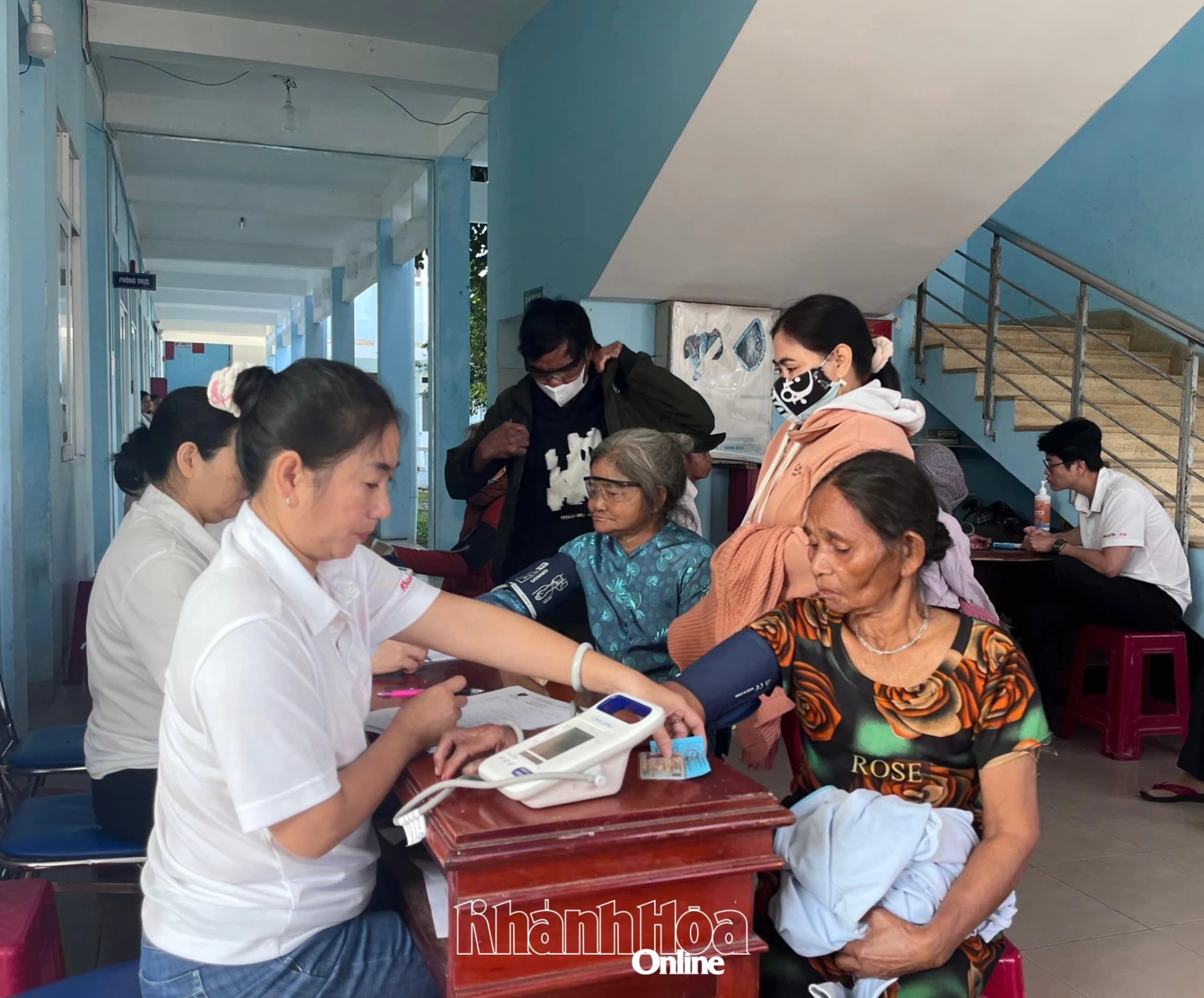 | Người dân tới khám được tầm soát huyết áp ban đầu. |
