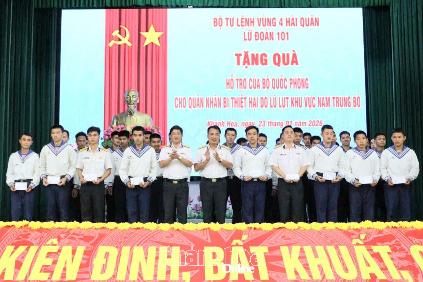 Đợt thiên tai cuối tháng 11-2025 đã gây thiệt hại nặng nề về người và tài sản tại nhiều địa phương, trong đó có gia đình của 38 quân nhân đang công tác tại Lữ đoàn 101. Trước những khó khăn, mất mát đó, Bộ Quốc phòng hỗ trợ 80 triệu đồng/người đối với 2 trường hợp quân nhân có nhà ở bị sập hoàn toàn; hỗ trợ 5 triệu đồng/người đối với 36 trường hợp nhà bị ngập sâu.