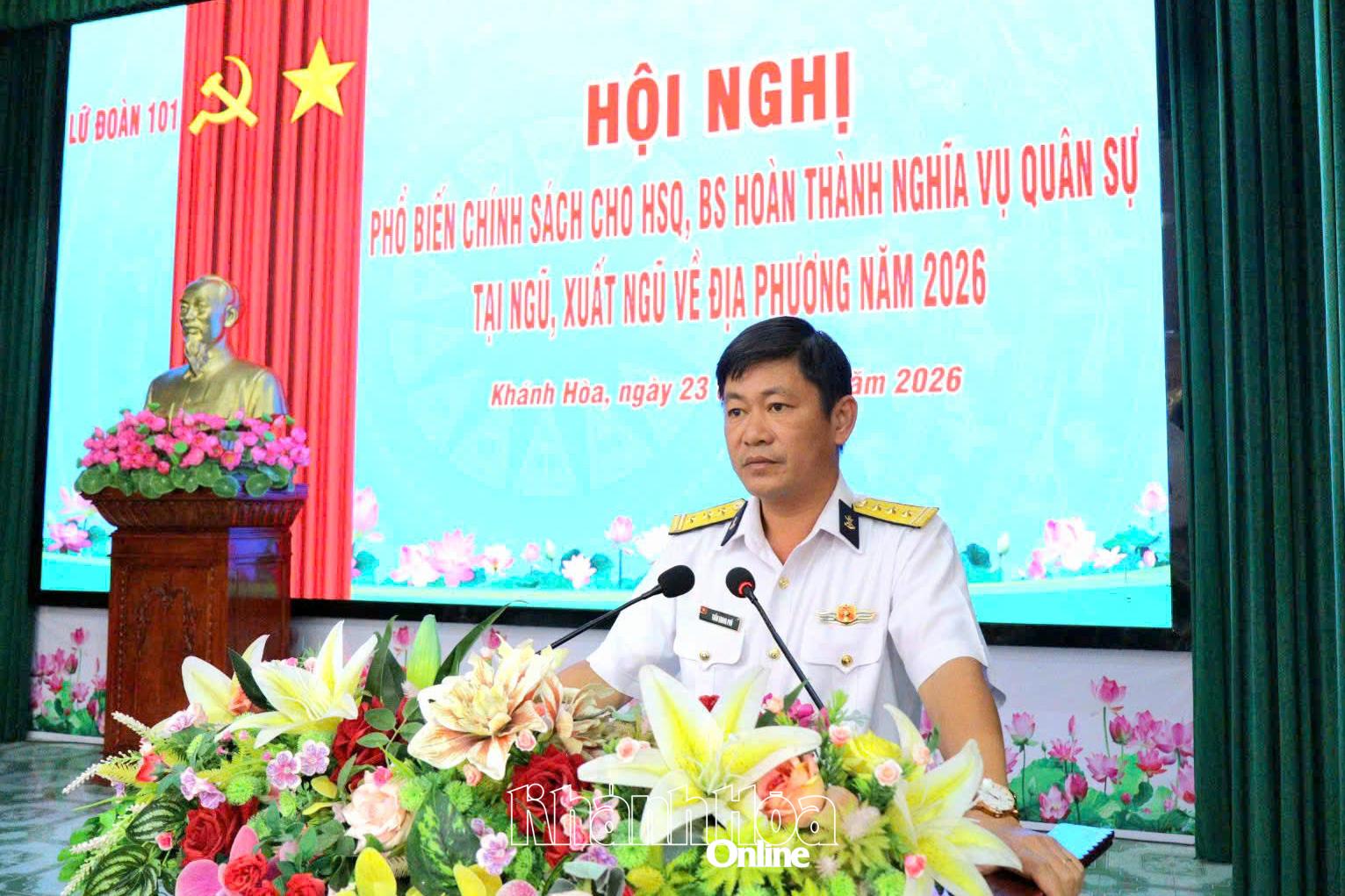 * Cùng ngày, Lữ đoàn 101 tổ chức hội nghị phổ biến chế độ, chính sách cho bộ đội chuẩn bị xuất ngũ năm 2026. Thượng tá Trần Quang Phú - Phó Lữ đoàn trưởng, Tham mưu trưởng dự, chỉ đạo.