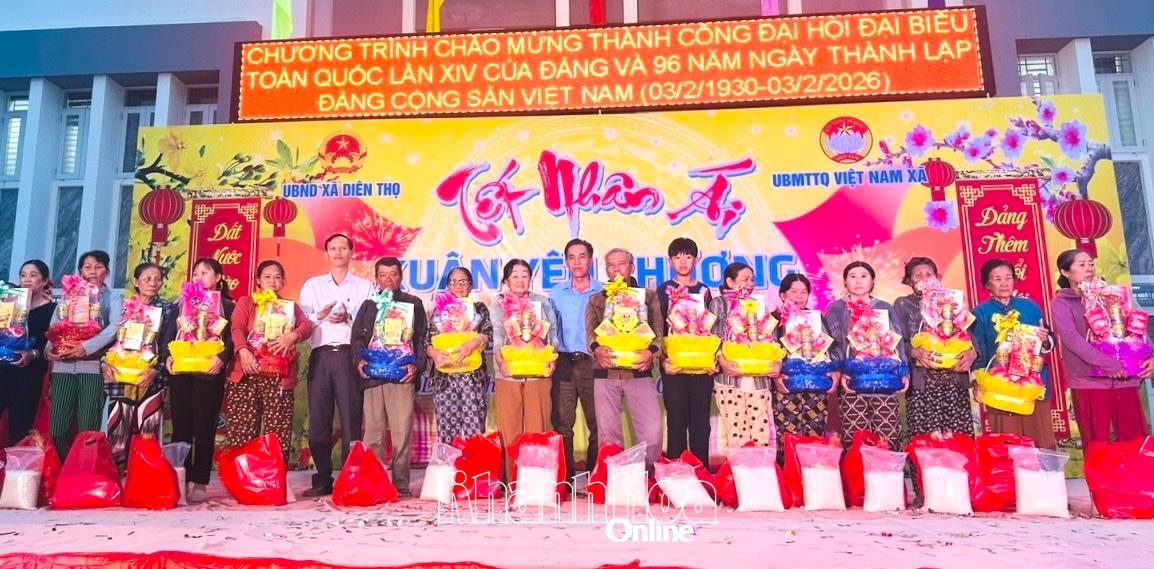 Tối 30-1, Ủy ban MTTQ Việt Nam xã Diên Thọ tổ chức chương trình “Gian hàng 0 đồng - Tết Nhân ái” Xuân Bính Ngọ 2026 chăm lo Tết cho các hộ nghèo, cận nghèo, gia đình chính sách và người có hoàn cảnh khó khăn trên địa bàn xã.
