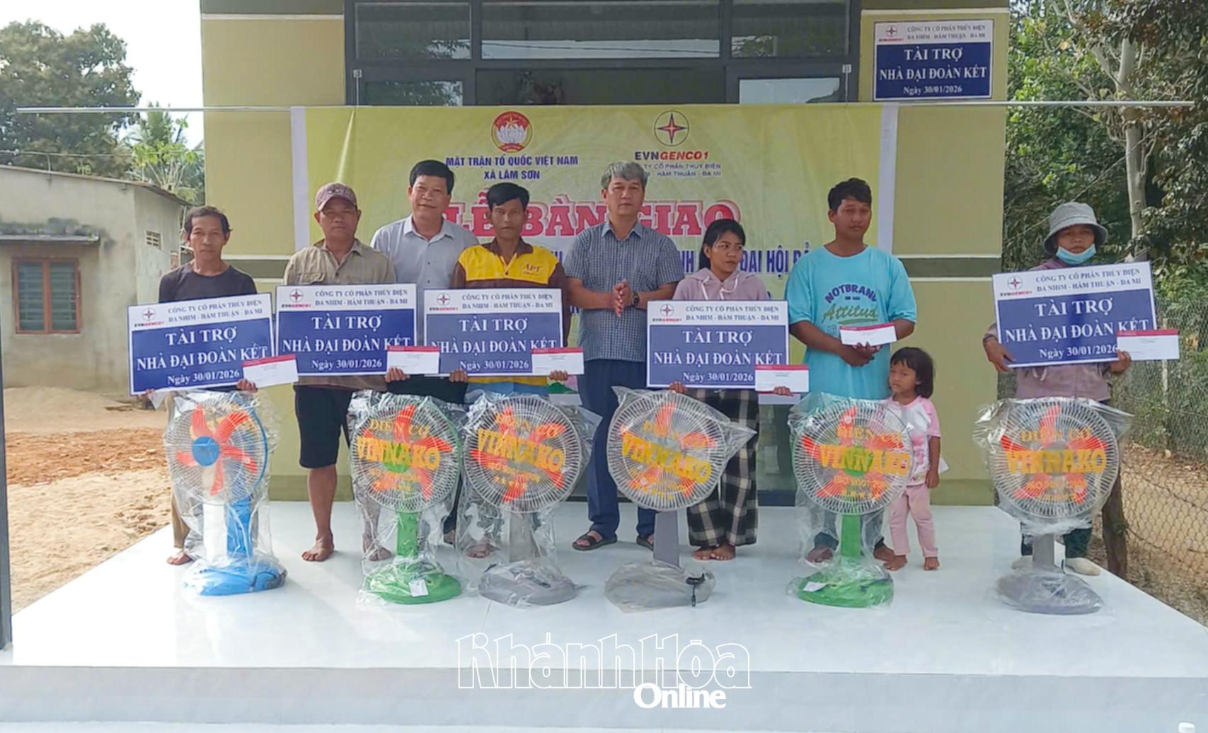 Tại buổi bàn giao nhà, Đảng ủy, HĐND, UBND, Ủy ban MTTQ Việt Nam xã Lâm Sơn đã tặng mỗi hộ 1 cây quạt; đồng thời phối hợp với Agribank Ninh Sơn trao 500.000 đồng/hộ, góp phần động viên các gia đình sớm ổn định cuộc sống.