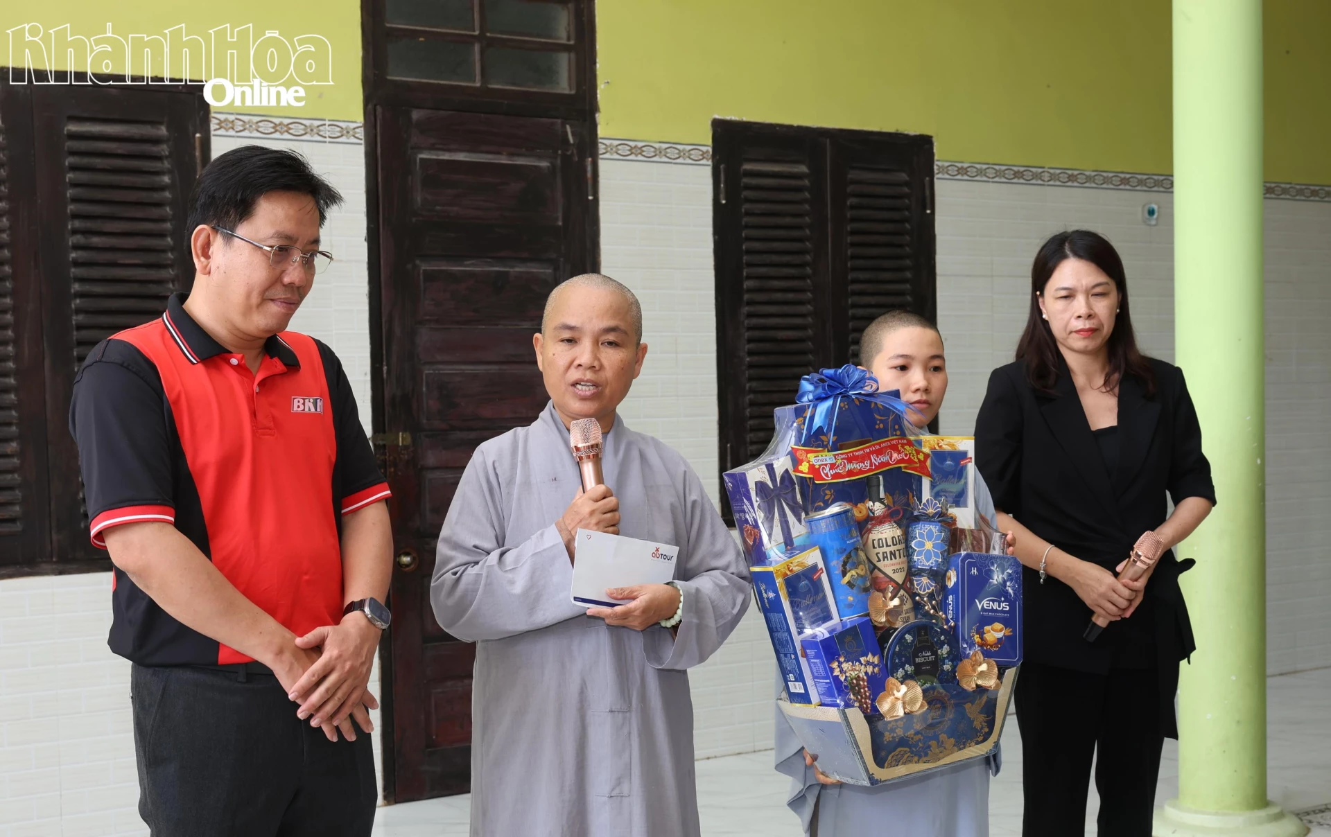 | Đại diện Mái ấm chùa Phật Bửu phát biểu cảm ơn khi được các đơn vị tặng quà. |
