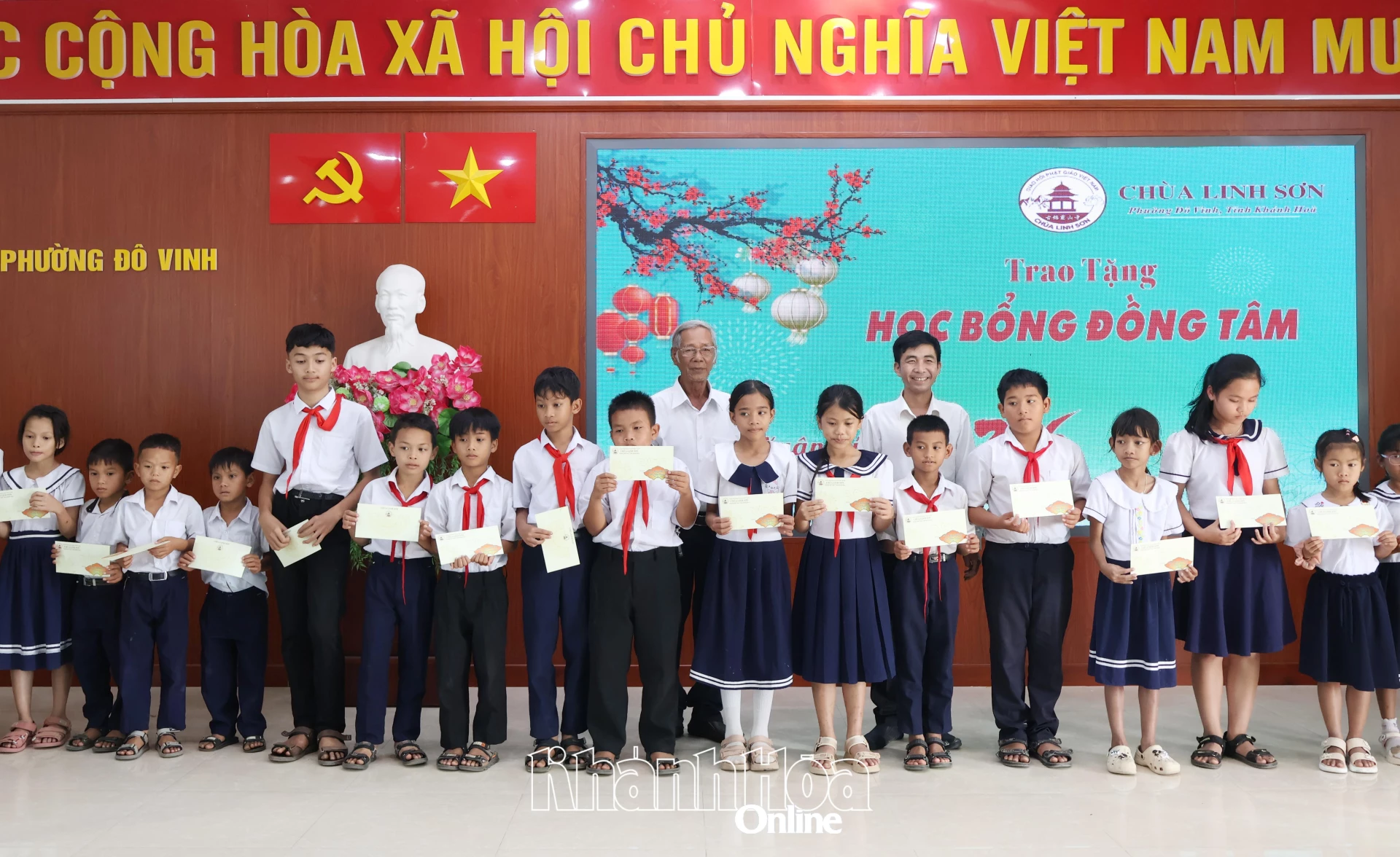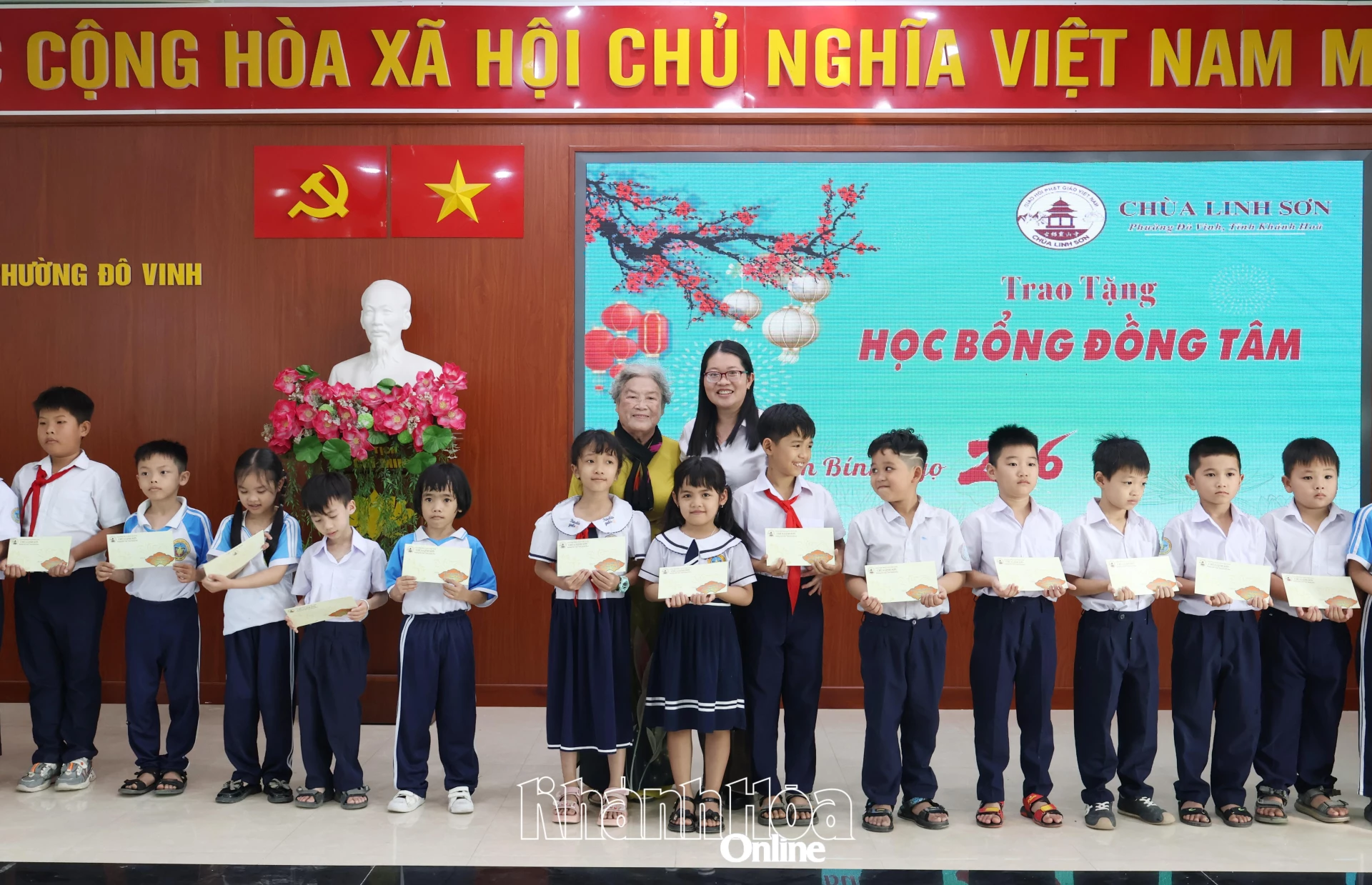 Chiều 9-2, Ủy ban MTTQ Việt Nam phường Đô Vinh phối hợp với chùa Linh Sơn tổ chức chương trình trao tặng học bổng Đồng Tâm nhân dịp Tết Nguyên đán Bính Ngọ 2026.