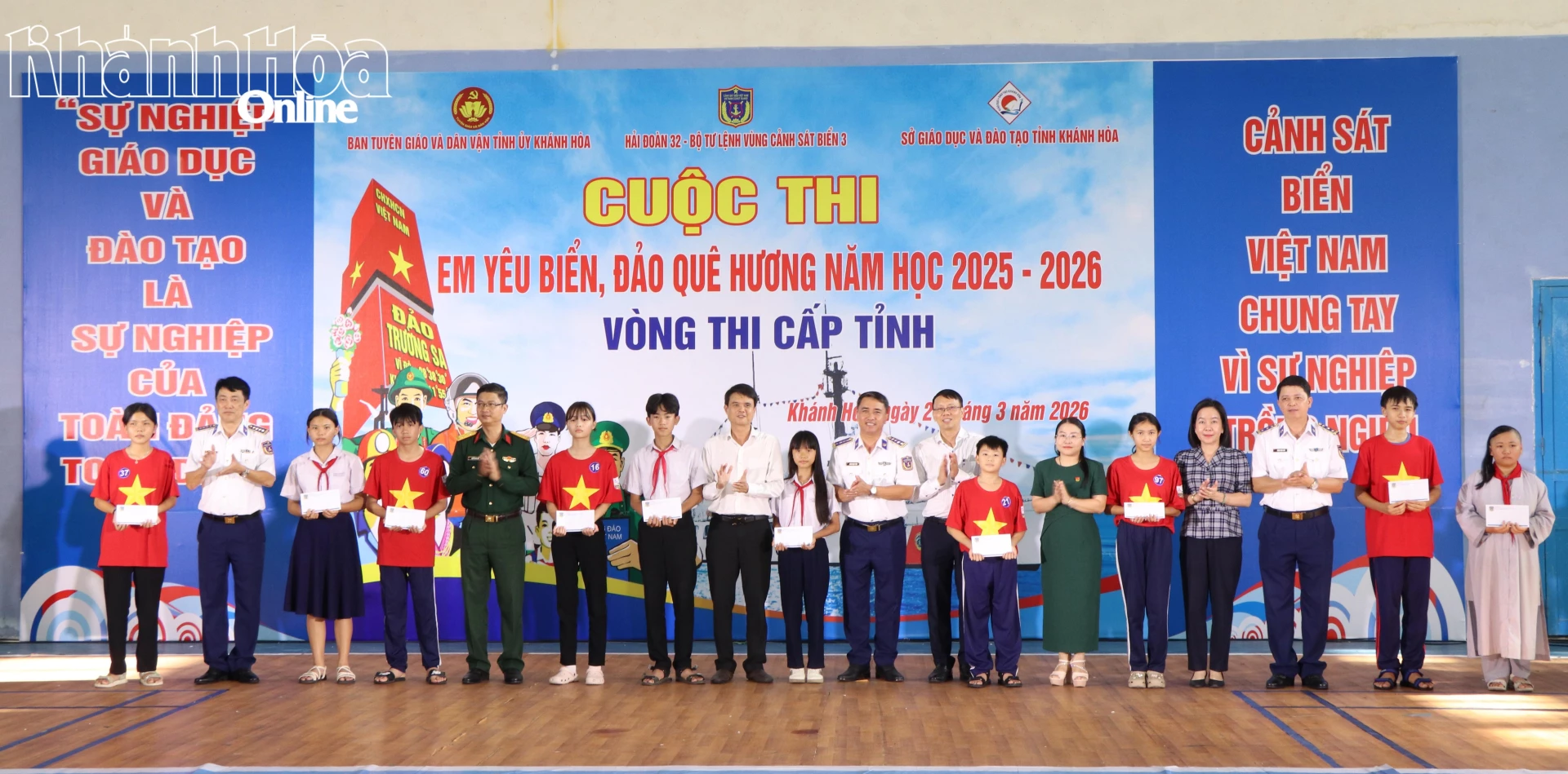Chiều 21-3, tại Trường Đại học Nha Trang, Hải đoàn 32 thuộc Bộ Tư lệnh Vùng Cảnh sát biển 3 phối hợp với Ban Tuyên giáo và Dân vận Tỉnh ủy Khánh Hòa, Sở Giáo dục và Đào tạo tổ chức vòng thi cấp tỉnh Cuộc thi “Em yêu biển đảo quê hương”. Đến dự có các đồng chí: Nguyễn Thanh Hà - Phó Chủ tịch UBND tỉnh Khánh Hòa; Hà Hồng Hạnh - Phó Trưởng ban Tuyên giáo và Dân vận Tỉnh ủy; Đại tá Hoàng Ngọc Thiện - Bí thư Đảng ủy, Chính ủy Hải đoàn 32.