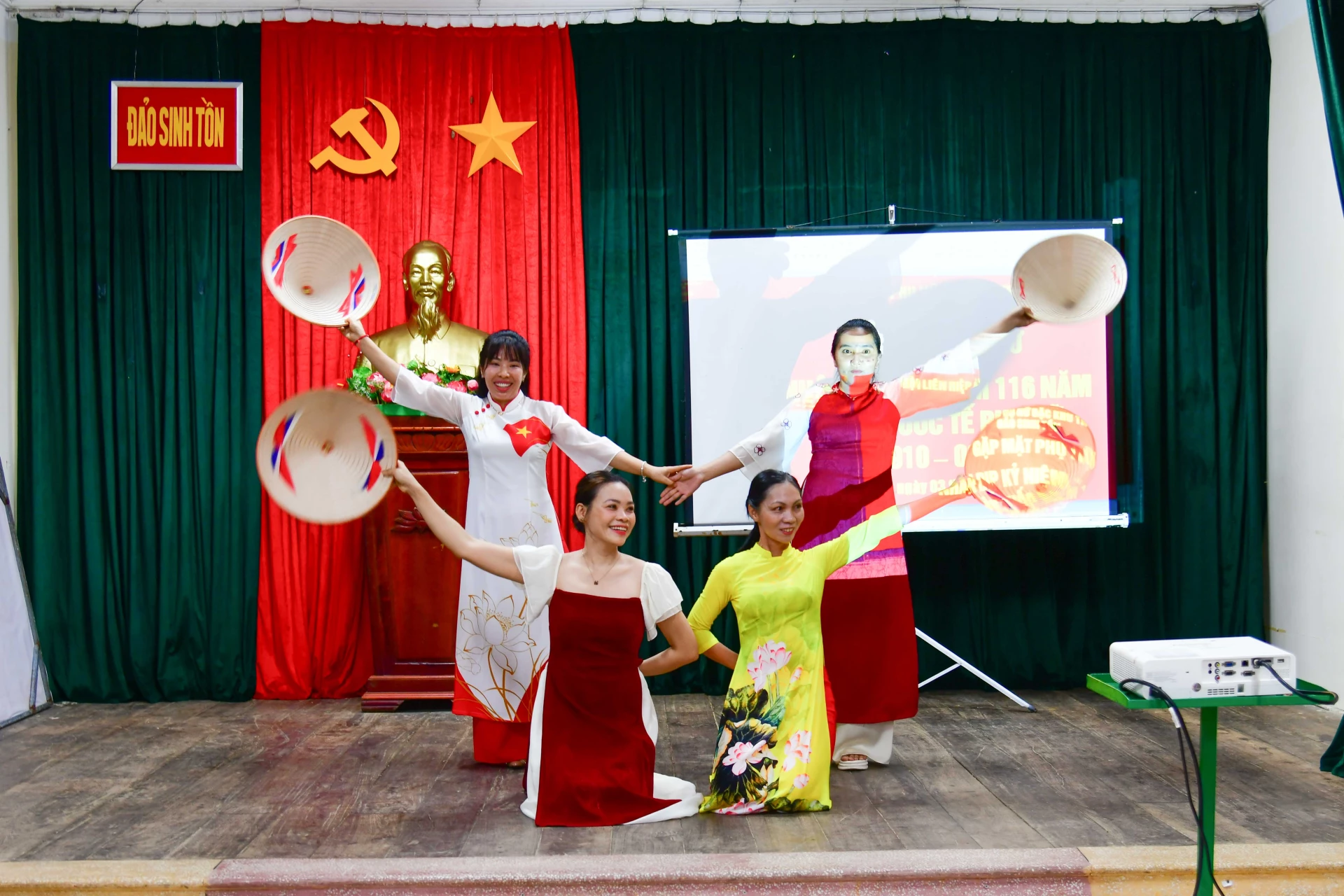 | Tiết mục văn nghệ của Tổ phụ nữ đảo Sinh Tồn trong buổi gặp mặt kỷ niệm. |