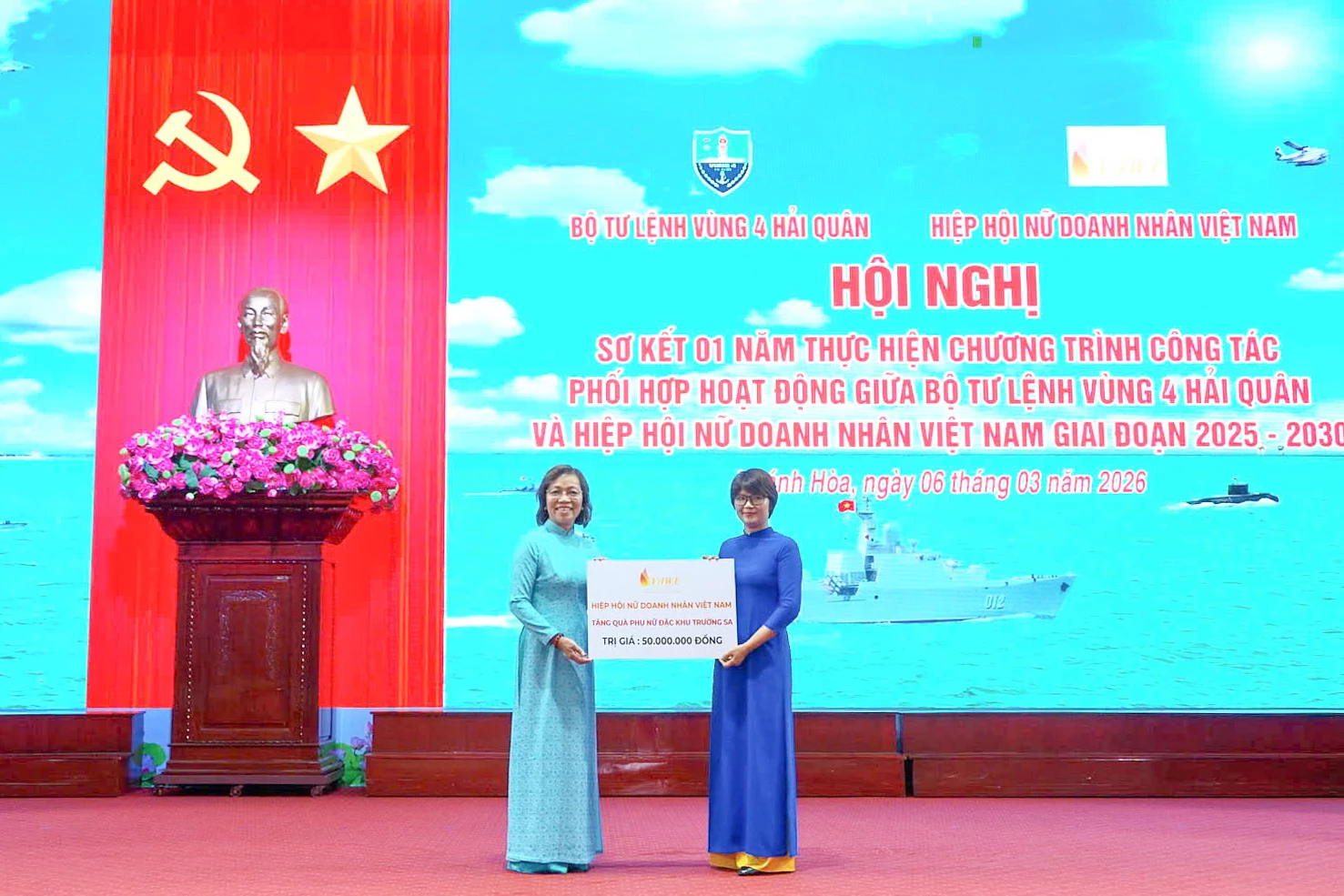 Chiều 6-3, Đảng ủy, Bộ Tư lệnh Vùng 4 Hải quân tổ chức gặp mặt kỷ niệm 116 năm Ngày Quốc tế Phụ nữ. Đại tá Nguyễn Hữu Minh - Phó Chính ủy Vùng 4 chủ trì. Dự buổi gặp mặt có Chuẩn Đô đốc Nguyễn Anh Tuấn - Tư lệnh Vùng 4; Ban Thường vụ Đảng ủy Vùng 4; lãnh đạo đặc khu Trường Sa, lãnh đạo, chỉ huy các cơ quan, đơn vị và hơn 100 cán bộ, hội viên phụ nữ thuộc 8 hội phụ nữ trong toàn vùng.