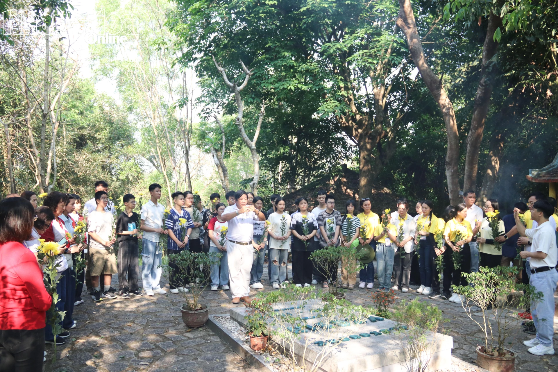 | Dâng hương, dâng hoa tại mộ bác sĩ A.Yersin. |