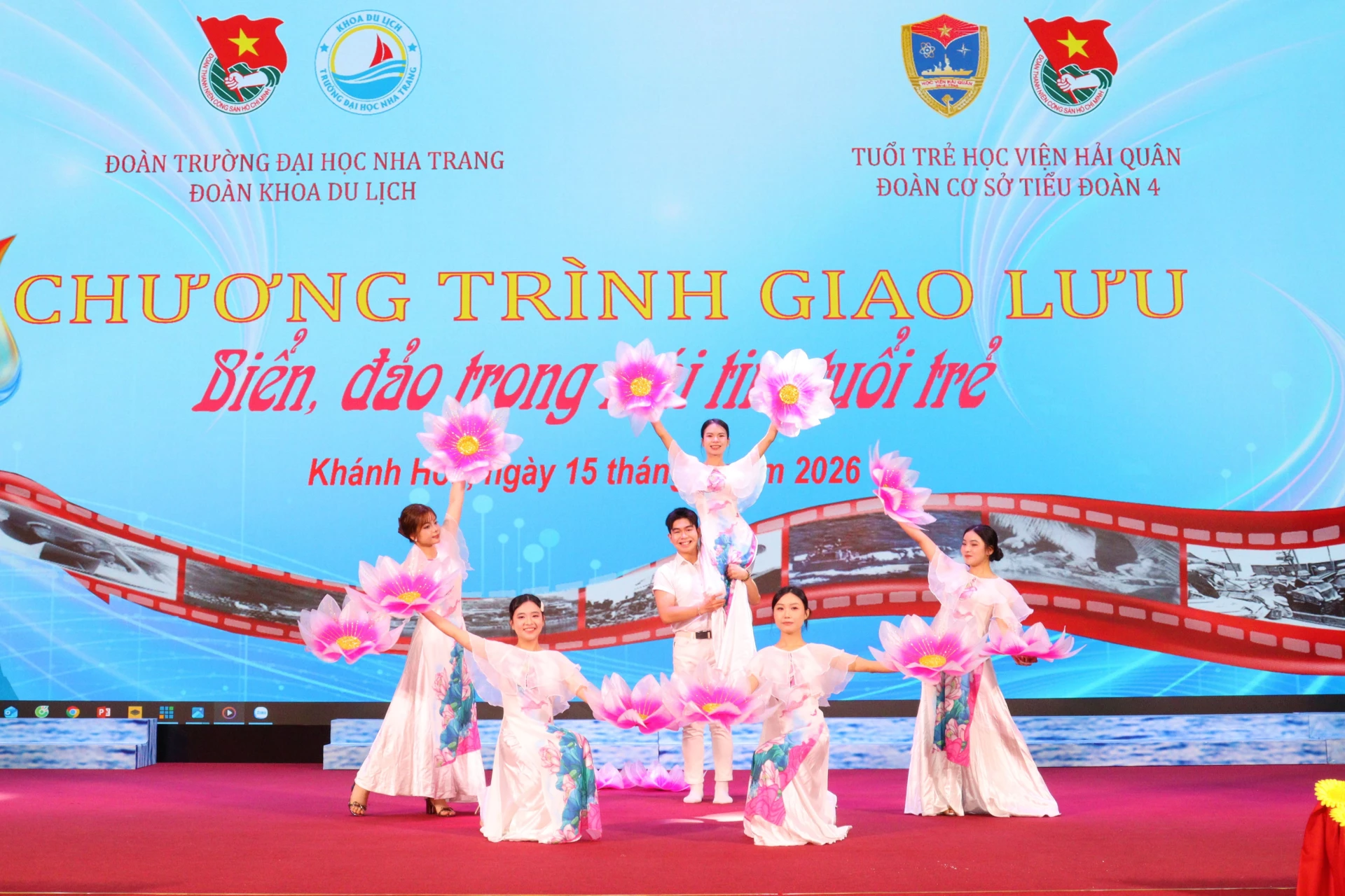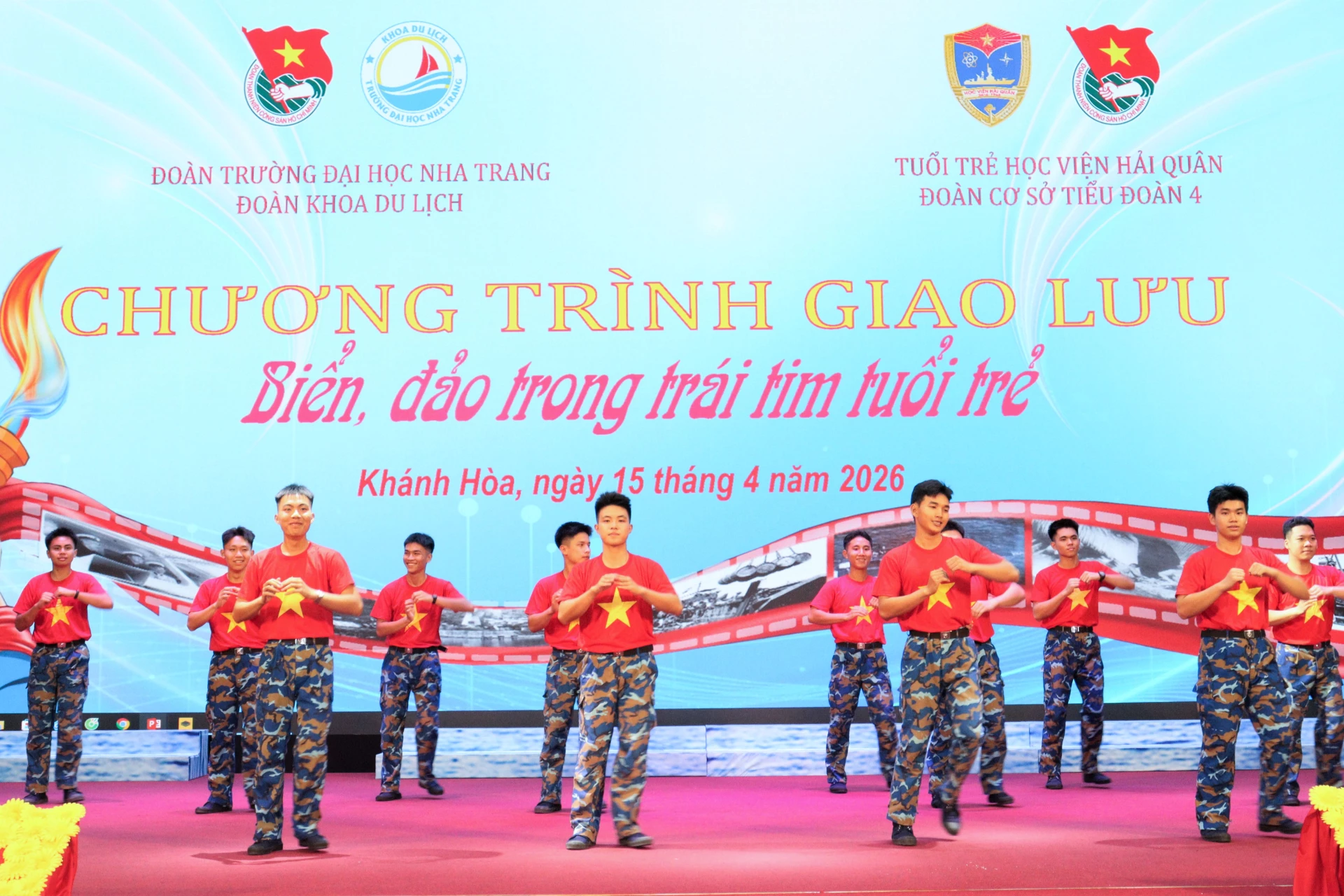 Tối 15-4, Đoàn cơ sở Tiểu đoàn 4, Học viện Hải quân tổ chức chương trình giao lưu, tuyên truyền về biển, đảo với chủ đề “Biển, đảo trong trái tim tuổi trẻ” cho hơn 130 cán bộ, giảng viên, sinh viên Khoa Du lịch, Trường Đại học Nha Trang.