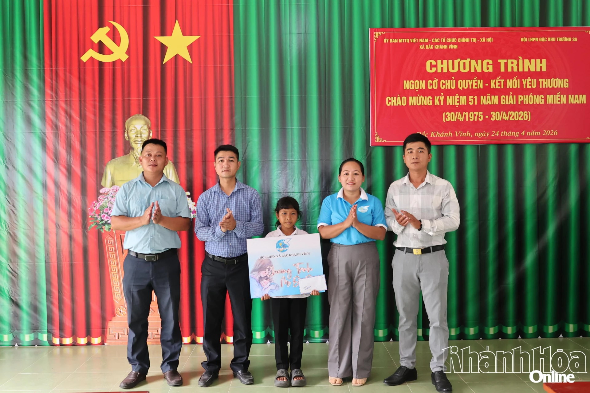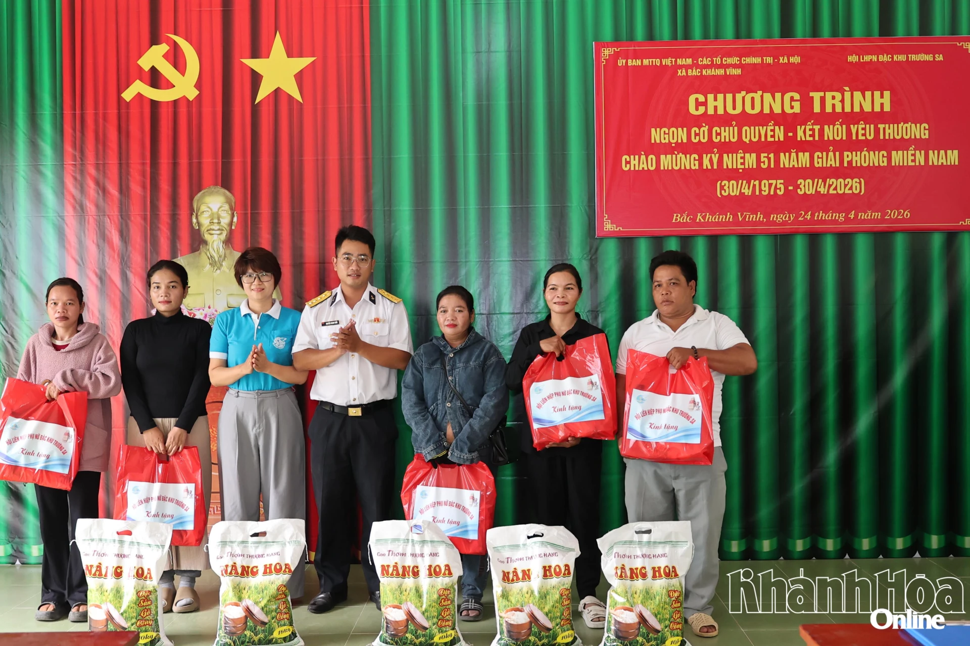 Kỷ niệm 51 năm Ngày Giải phóng miền Nam, thống nhất đất nước (30-4-1975 - 30-4-2026), sáng 24-4, Ủy ban MTTQ Việt Nam và các tổ chức chính trị - xã hội xã Bắc Khánh Vĩnh phối hợp với Hội Liên hiệp Phụ nữ đặc khu Trường Sa tổ chức chương trình “Ngọn cờ chủ quyền - Kết nối yêu thương”.