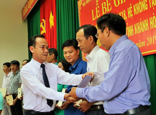 Chiều 20-5, Trường Chính trị tỉnh Khánh Hòa phối hợp với Học viện Chính trị khu vực III (Học viện Chính trị Quốc gia Hồ Chí Minh) tổ chức lễ bế giảng lớp cao cấp lý luận chính trị K18, hệ không tập trung, khóa học 2017-2019 tại Khánh Hòa.