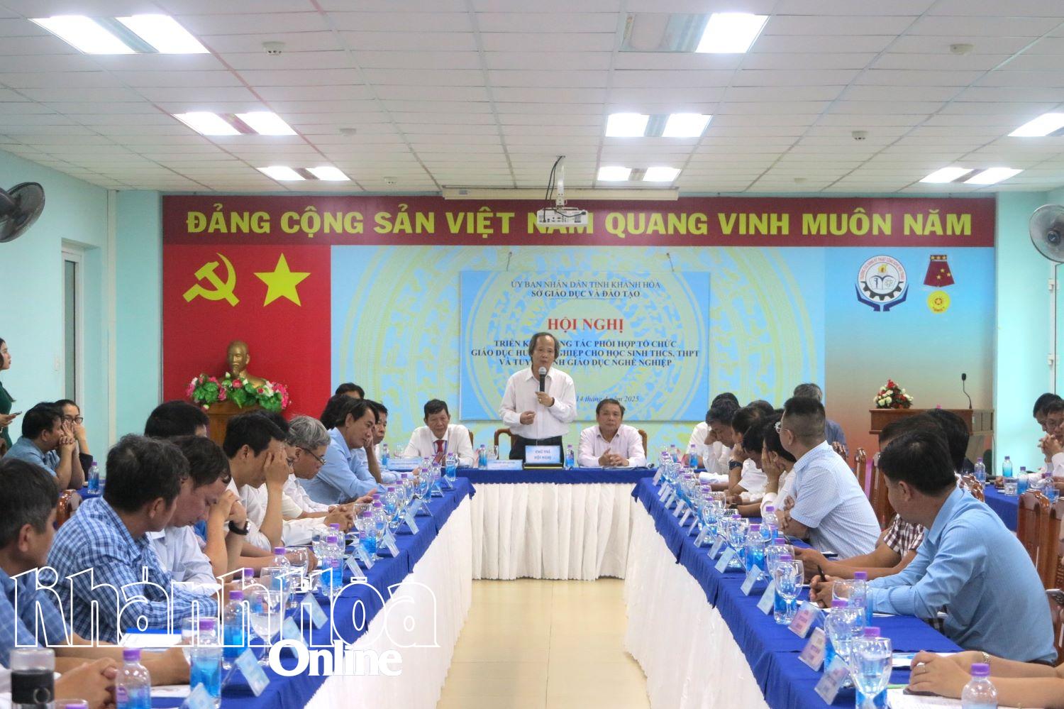 Chiều 14-4, tại Trường Cao đẳng Kỹ thuật Công nghệ Nha Trang, Sở Giáo dục và Đào tạo Khánh Hòa tổ chức hội nghị triển khai công tác tuyển sinh giáo dục nghề nghiệp năm 2025. Hội nghị có hơn 80 đại biểu, đến từ 40 trường THPT, trung tâm giáo dục thường xuyên – hướng nghiệp, trường trung cấp, cao đẳng trên địa bàn tỉnh tham gia.