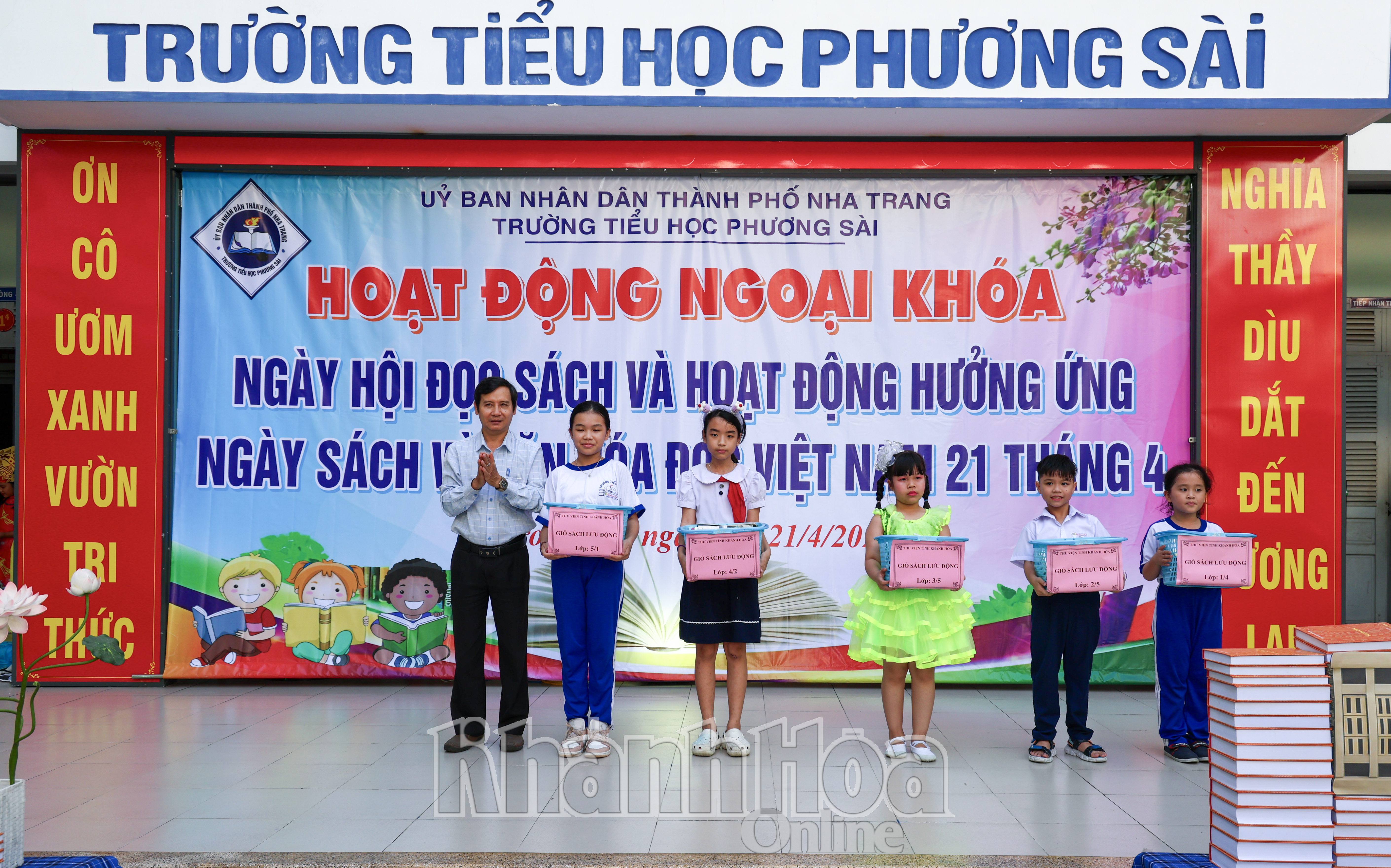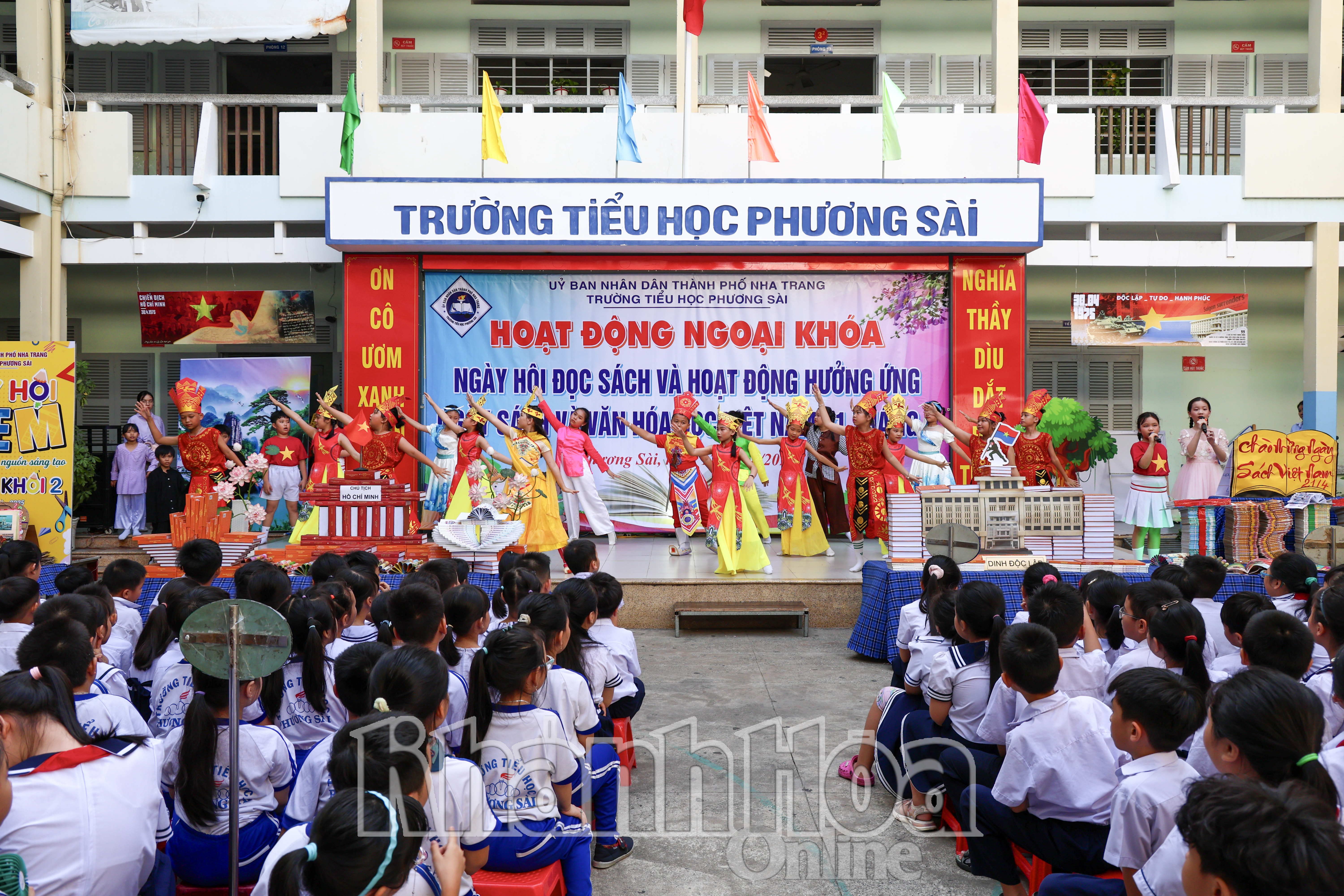 Chiều 17-4, Trường Tiểu học Phương Sài, TP. Nha Trang tổ chức các hoạt động hưởng ứng Ngày sách và văn hóa đọc Việt Nam (21-4). Theo đó, học sinh toàn trường đã tham gia nhiều hoạt động sôi nổi như đọc thơ, kể chuyện, hóa thân vào câu chuyện, trưng bày sách…
