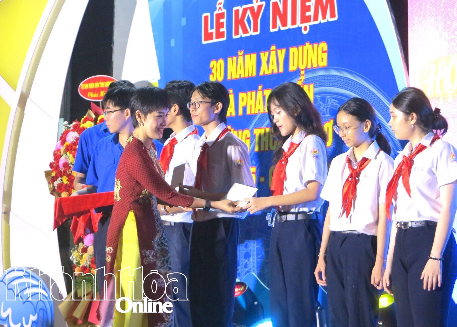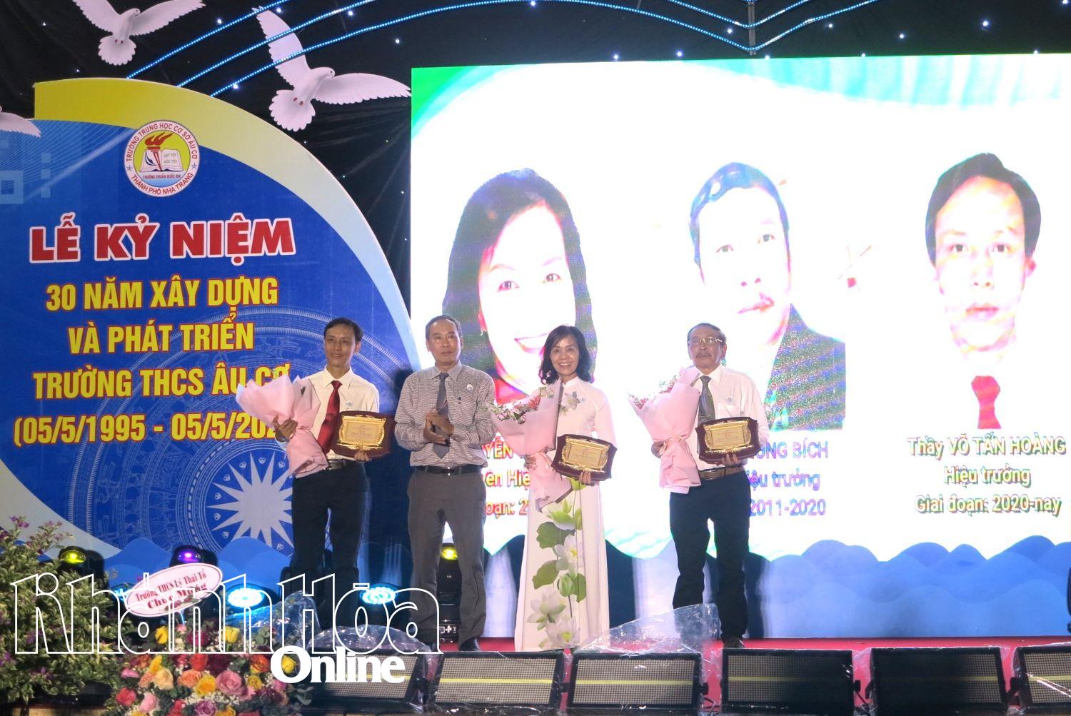 Dịp này, UBND tỉnh tặng bằng khen cho Trường THCS Âu Cơ về thành tích xuất sắc, đóng góp vào sự nghiệp phát triển giáo dục - đào tạo tỉnh; tặng bằng khen cho trường về thành tích trong phong trào Toàn dân bảo vệ an ninh Tổ quốc năm 2024; tặng danh hiệu chiến sĩ thi đua cấp tỉnh cho 1 cá nhân. Ngoài ra, UBND TP. Nha Trang tặng giấy khen cho 3 cá nhân; Phòng Giáo dục và Đào tạo thành phố tri ân hiệu trưởng nhà trường qua các thời kỳ; nhà trường tri ân các phụ huynh học sinh có nhiều đóng góp cho sự phát triển của trường; một số đơn vị, tập thể cựu học sinh trao tổng cộng 32 suất học bổng cho học sinh xuất sắc, học sinh hiếu học.