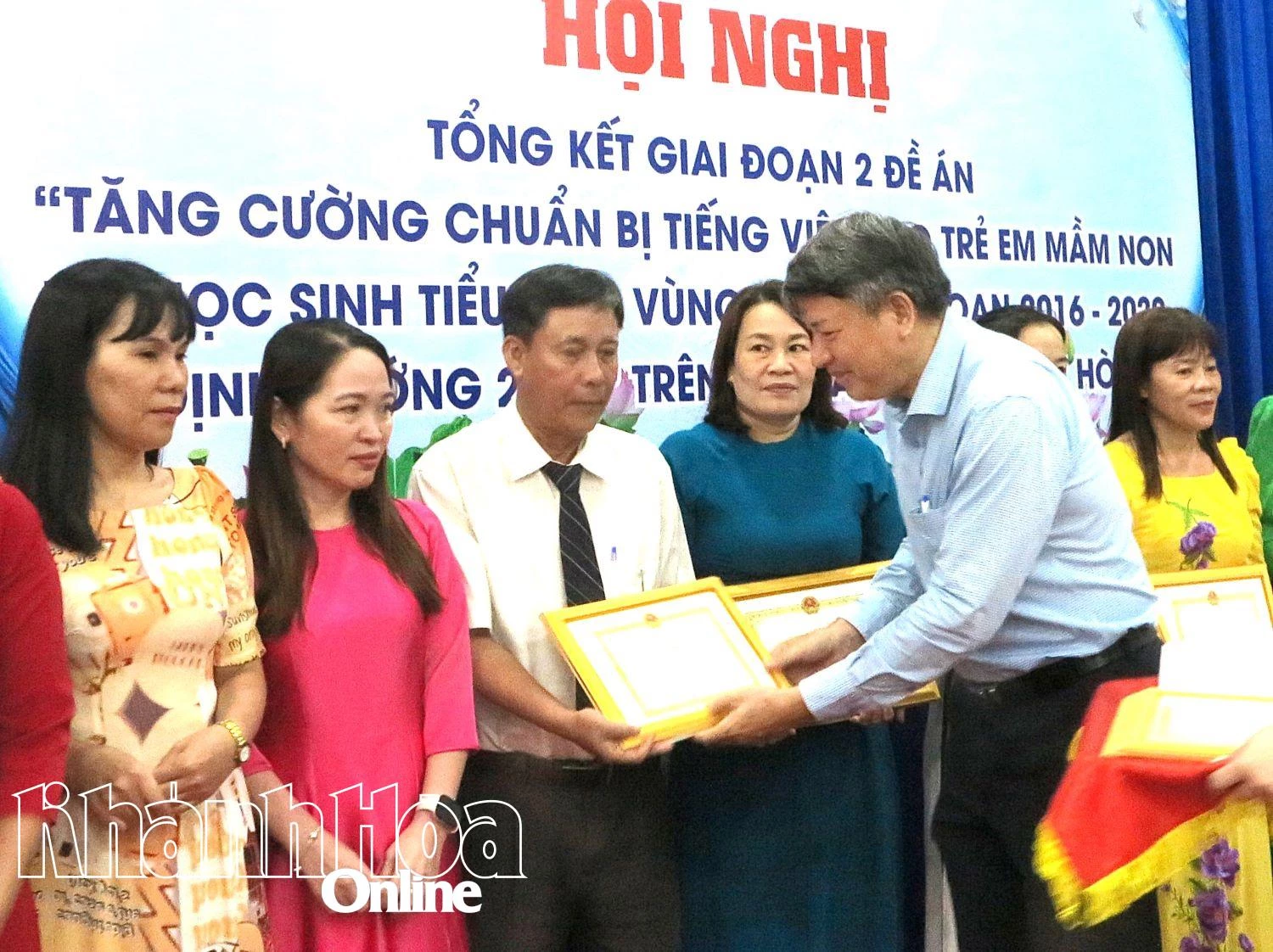 Dịp này, Sở Giáo dục và Đào tạo tặng giấy khen cho 9 tập thể, 17 cá nhân có thành tích xuất sắc trong thực hiện giai đoạn 2 của đề án.