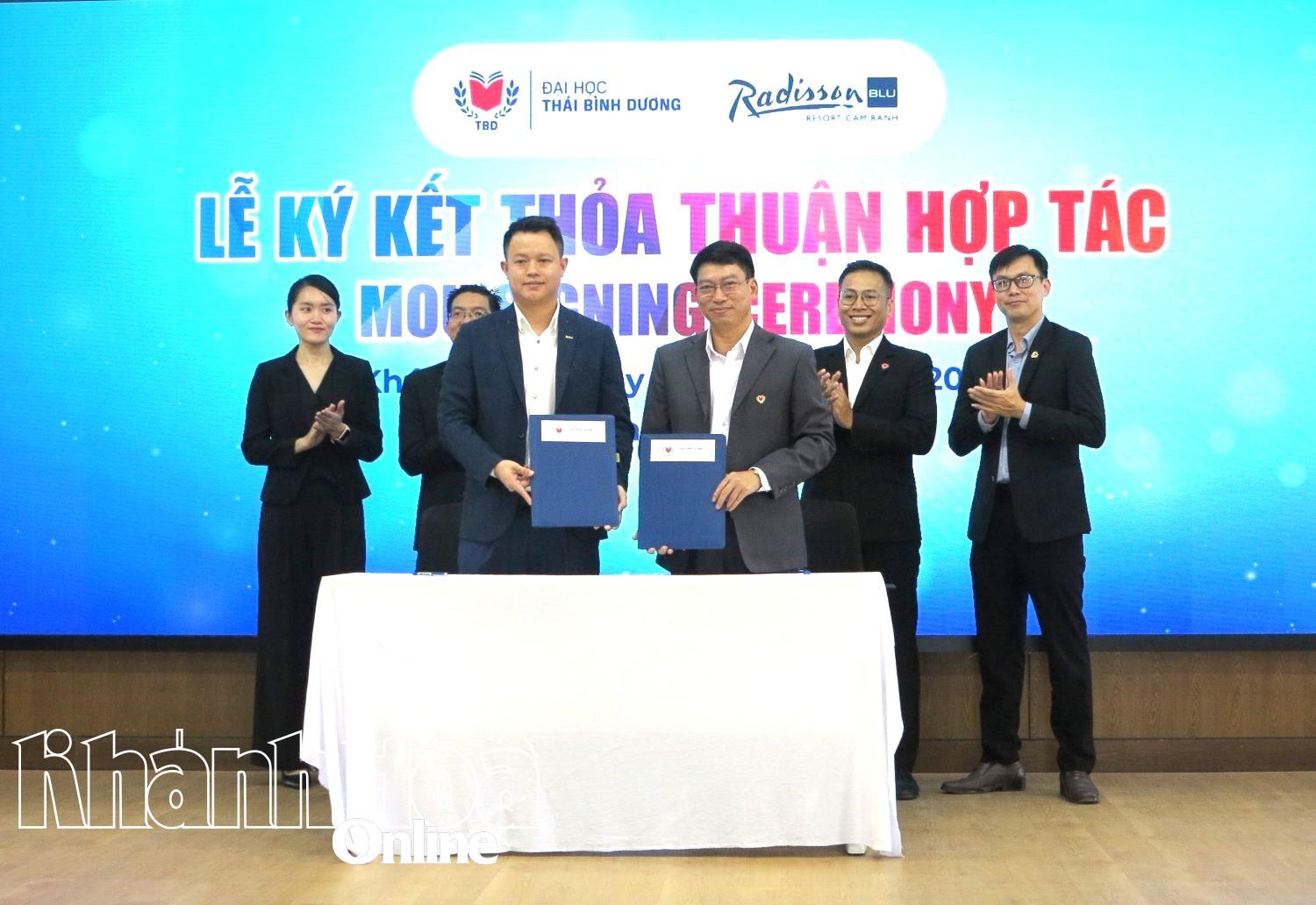 | Đại diện Trường Đại học Thái Bình Dương và Radisson Blu Resort Cam Ranh ký kết hợp tác. |