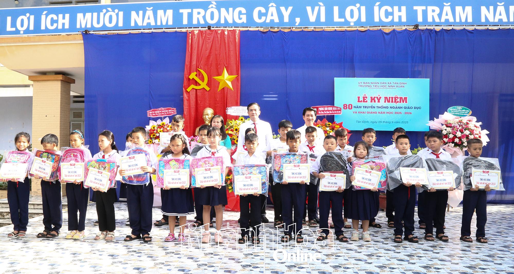 Sáng 5-9, Ban Biên tập Báo và Phát thanh, Truyền hình Khánh Hòa đã dự lễ khai giảng năm học 2025 - 2026 và trao 223 suất học bổng, trị giá hơn 121 triệu đồng, cùng nhiều quà tặng cho học sinh một số trường học trên địa bàn tỉnh.