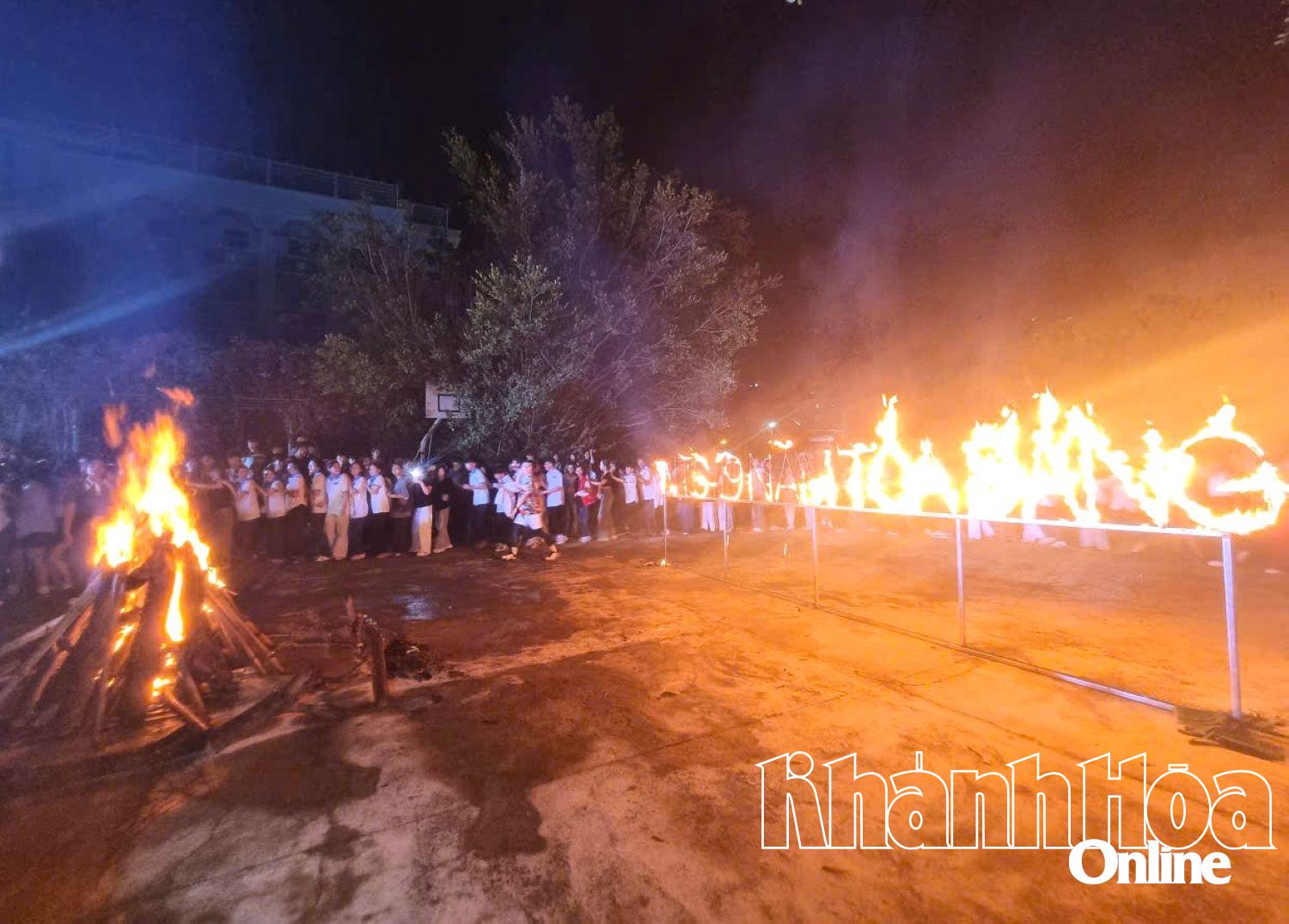 | Tân sinh viên tham gia giao lưu đốt lửa trại. |