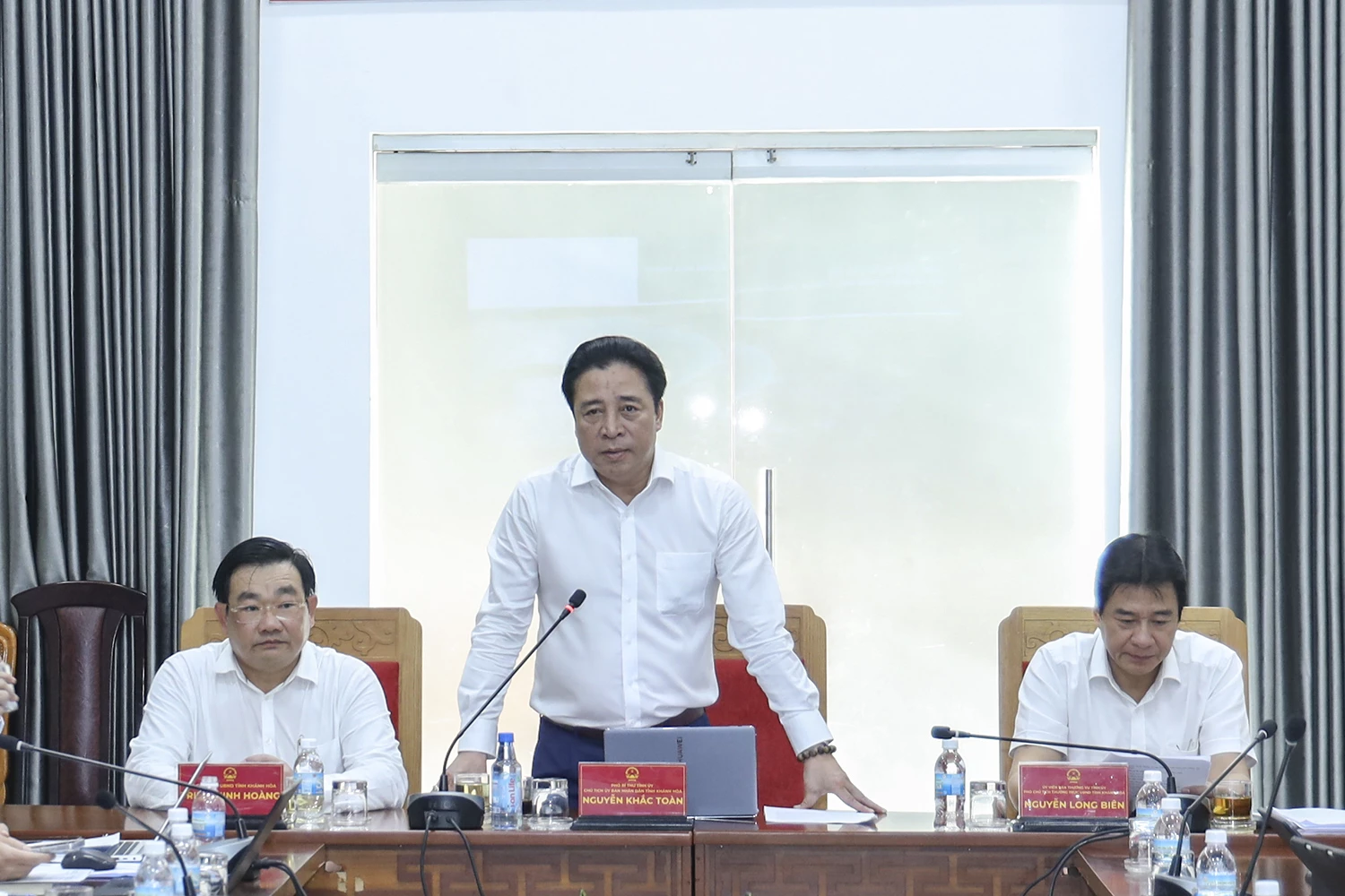 Sáng 24-10, đồng chí Nguyễn Khắc Toàn - Phó Bí thư Tỉnh ủy, Chủ tịch UBND tỉnh chủ trì cuộc họp nghe báo cáo kết quả triển khai ý tưởng thiết kế đô thị và việc quản lý sử dụng đất khu vực phía đông đường Trần Phú - Phạm Văn Đồng. Cùng tham dự có các đồng chí: Nguyễn Long Biên - Ủy viên Ban Thường vụ Tỉnh ủy, Phó Chủ tịch Thường trực UBND tỉnh; Trịnh Minh Hoàng - Phó Chủ tịch UBND tỉnh, đại diện các sở, ban, ngành và địa phương liên quan.