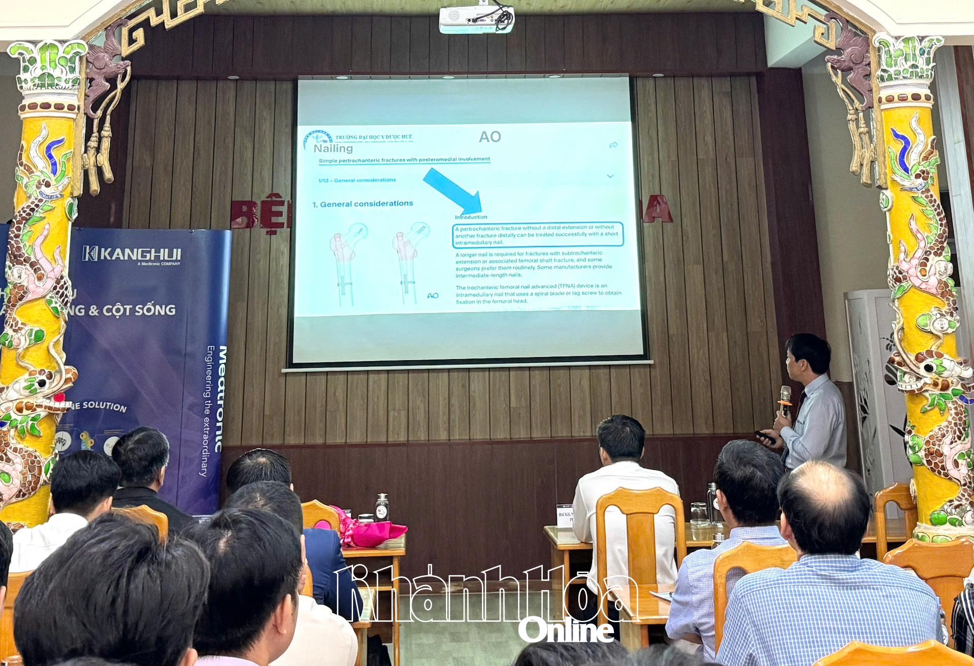 Trong khuôn khổ hội thảo, các đại biểu đã cùng nhau trao đổi, thảo luận nhiều nội dung chuyên môn sâu như: Phẫu thuật kết hợp xương bằng phương pháp đinh nội tủy PFNA trong gãy liên mấu chuyển; các biến chứng liên quan kết hợp xương đinh chốt nội tủy và cách giải quyết; đánh giá kết quả phẫu thuật gãy liên mẫu chuyển xương đùi bằng đinh PFNA… Ngoài phần thảo luận lý thuyết, hội thảo còn tổ chức ca phẫu thuật thị phạm gãy liên mấu chuyển bằng phương pháp đóng đinh nội tủy PFNA ngay tại Bệnh viện Đa khoa Khánh Hòa, do các chuyên gia đầu ngành thực hiện.