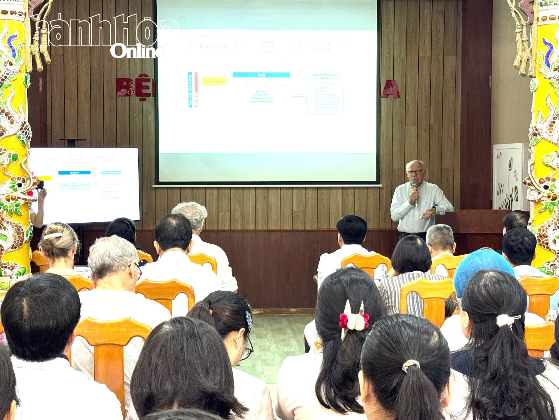 | Chuyên gia Pháp đang trình bày chuyên đề khoa học tại hội thảo. |