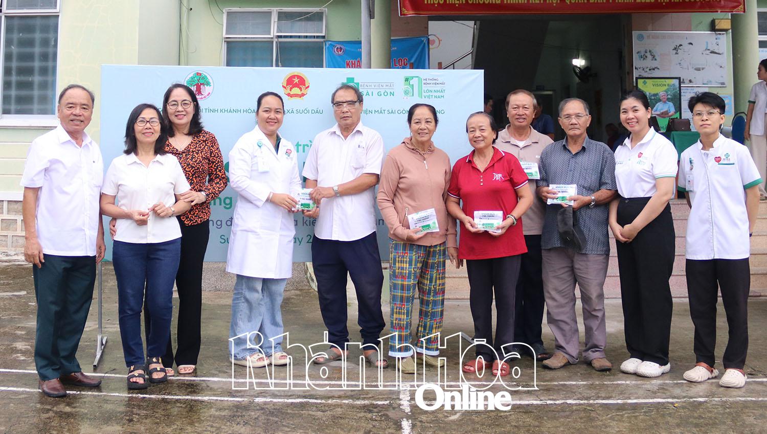 Theo đó, đội ngũ y, bác sĩ Bệnh viện Mắt Sài Gòn - Nha Trang đã khám tầm soát các bệnh lý về mắt, tư vấn chăm sóc sức khỏe mắt và cấp phát thuốc miễn phí cho hơn 100 NCT tại xã. Qua quá trình khám sàng lọc, các y, bác sĩ đã tư vấn cho NCT các kiến thức chăm sóc, vệ sinh, bảo vệ mắt tại nhà để cải thiện và duy trì thị lực. NCT đến thăm khám được tặng các loại thuốc bổ mắt, thuốc nhỏ mắt miễn phí. Đối với các trường hợp được chẩn đoán có bệnh lý nặng về mắt như: Đục thủy tinh thể, mộng thịt... các bác sĩ đã tư vấn cho người bệnh hướng điều trị phù hợp.