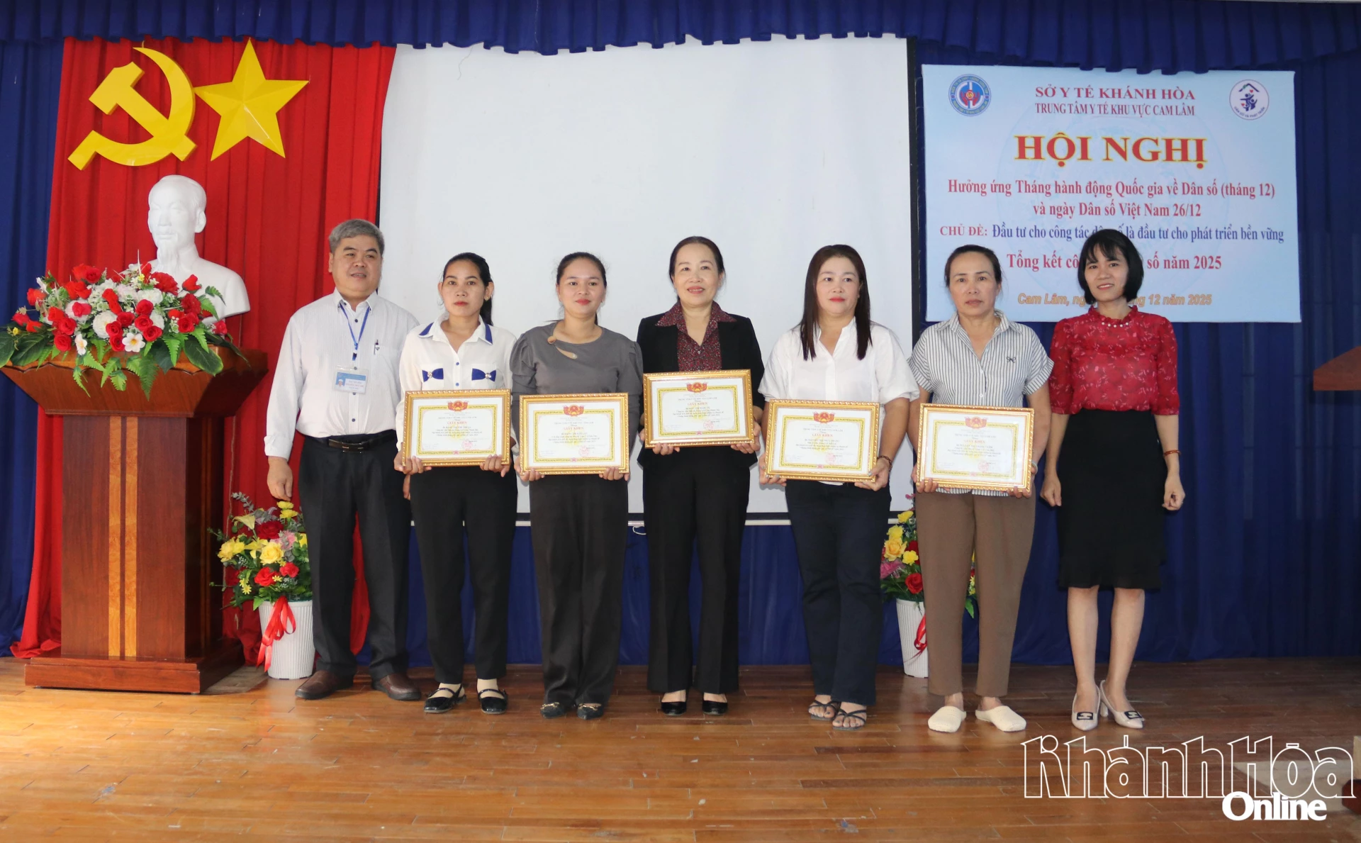 Dịp này, Trung tâm Y tế khu vực Cam Lâm tặng giấy khen cho 1 tập thể và 7 cá nhân có thành tích xuất sắc trong thực hiện nhiệm vụ chuyên đề “Tháng hành động quốc gia về dân số” năm 2025.