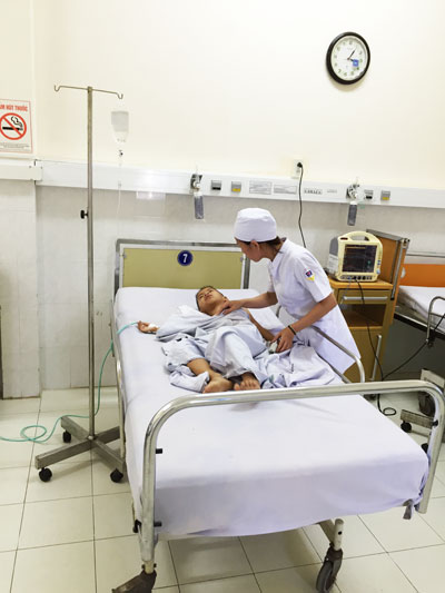 Đầu tháng 5, Bệnh viện Đa khoa (BVĐK) tỉnh đã cứu sống bệnh nhi Nguyễn Hoàng Thanh V. (39 tháng tuổi, xã Cam Tân, huyện Cam Lâm) bị viêm não rất nặng. Bệnh nhi nhập viện trong tình trạng hôn mê sâu, mất hết các phản xạ, đồng tử 2 bên mắt giãn, đáp ứng kém với ánh sáng, suy hô hấp, nhịp thở nhanh, sâu. Bệnh nhân (BN) được chẩn đoán: viêm não - nhiễm toan chuyển hóa nặng. Khoa Nhi của BV đã tiến hành cấp cứu cho BN. Qua 7 ngày điều trị tích cực, tình trạng sức khỏe của BN cải thiện tốt, hết sốt, tỉnh táo, tiếp xúc được, tự thở tốt, ăn uống, ngủ được... Theo bà Nguyễn Thu H. - mẹ của BN, trước khi nhập viện 3 ngày, V. có triệu chứng sốt cao, ho vài tiếng. Nghĩ V. mắc bệnh sốt thông thường nên gia đình cho uống thuốc hạ sốt. Sau đó, thấy V. sốt li bì, ăn uống kém, thở mệt nên đưa vào BVĐK Cam Lâm. Tại đây, các y, bác sĩ chẩn đoán V. mắc bệnh viêm phổi nặng nên chuyển đến BVĐK tỉnh.