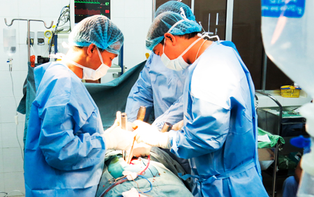 | Bác sĩ Khoa Ngoại Cột sống thực hiện phẫu thuật cho bệnh nhân |