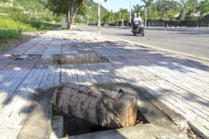 Trên vỉa hè đường Nguyễn Cơ Thạch, đoạn giáp đường Nguyễn Hồng Sến (TP. Nha Trang ), có 2 hố ga nằm gần nhau không nắp đậy, lộ ra hố sâu.
